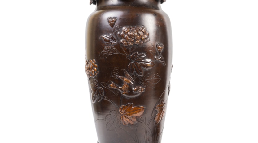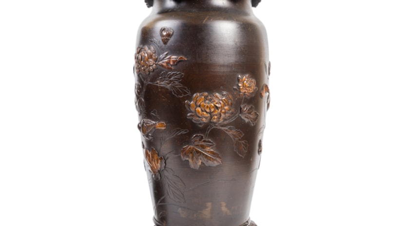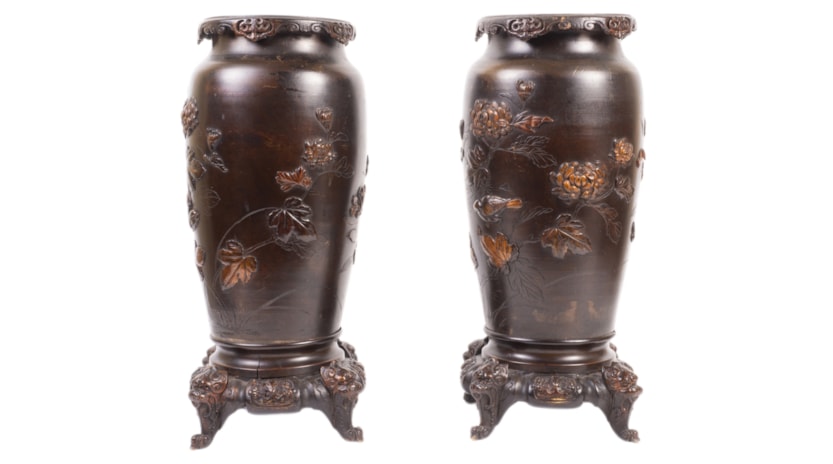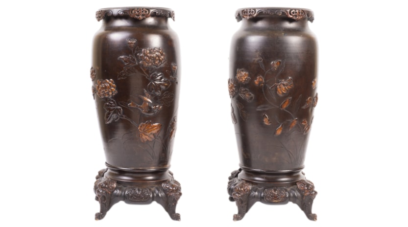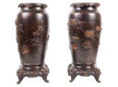 Pair Japanese Meiji period bronze vases / lamps