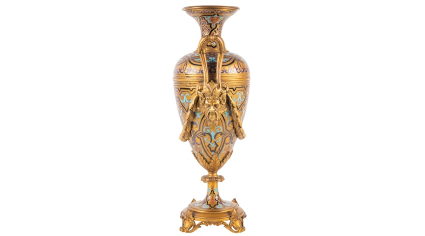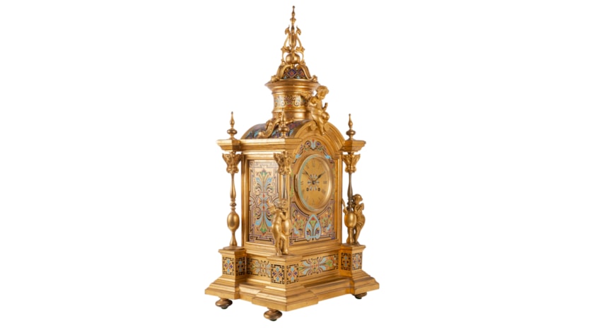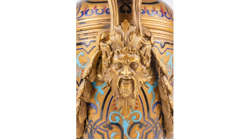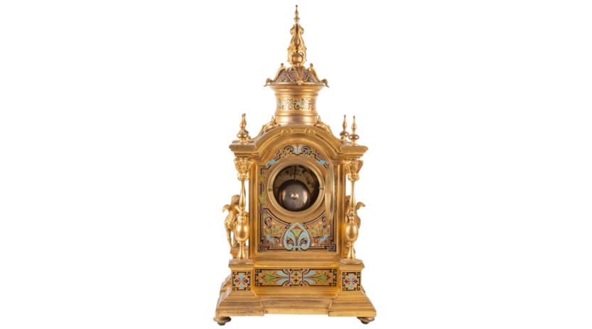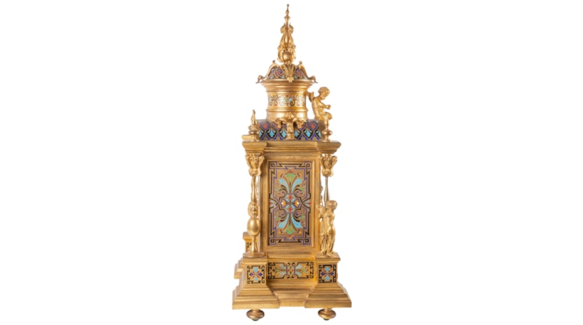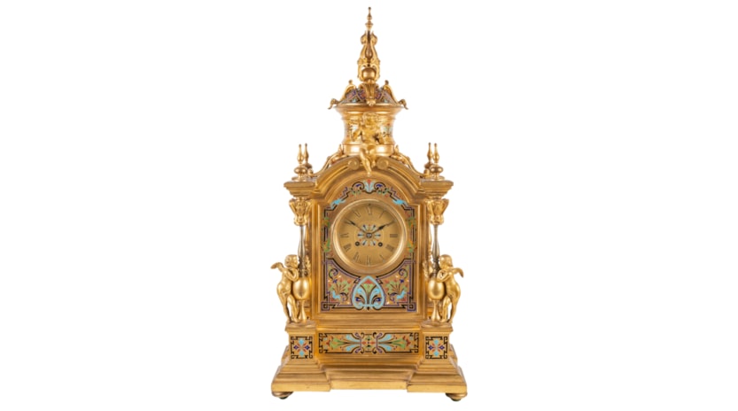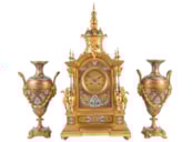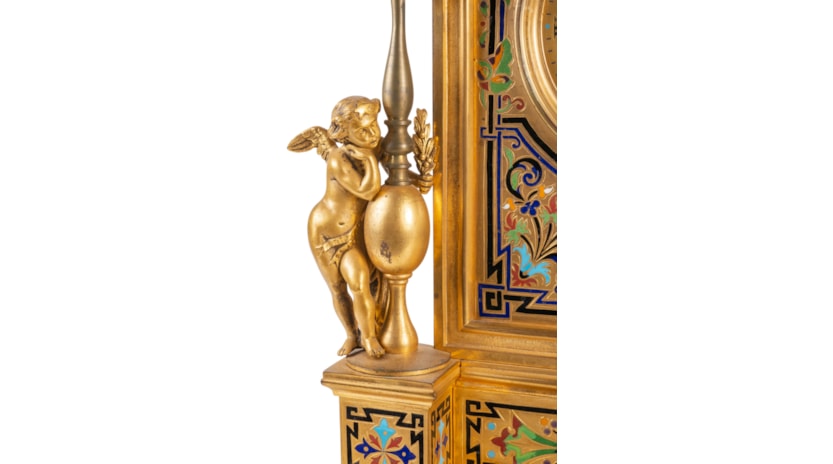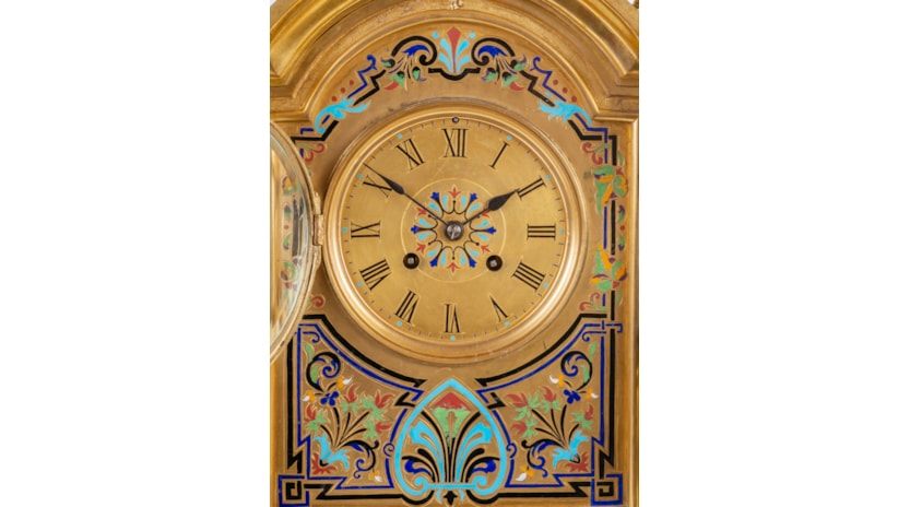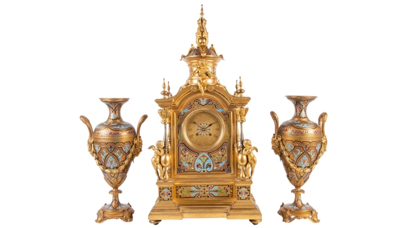 Large 19th Century French Champleve enamel clock set.