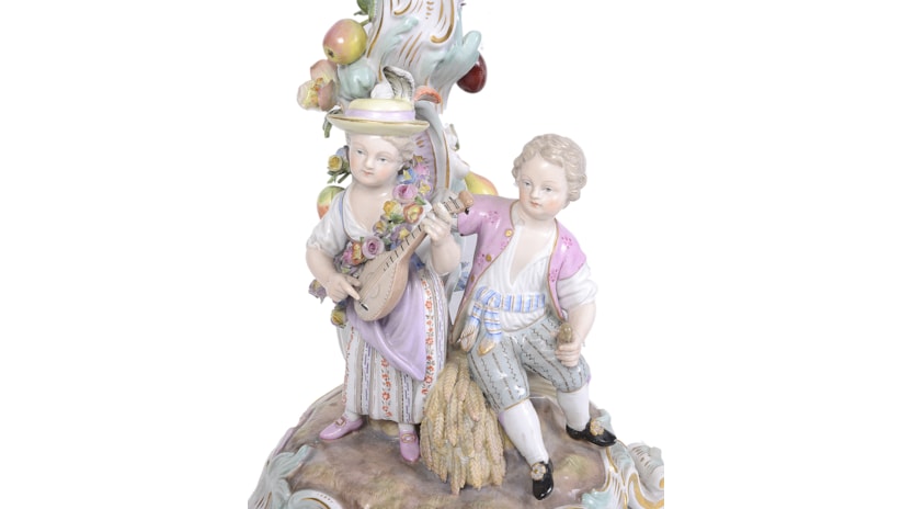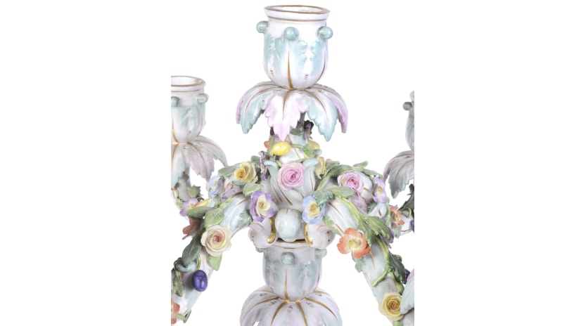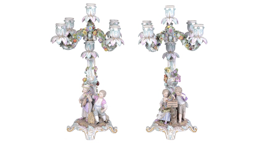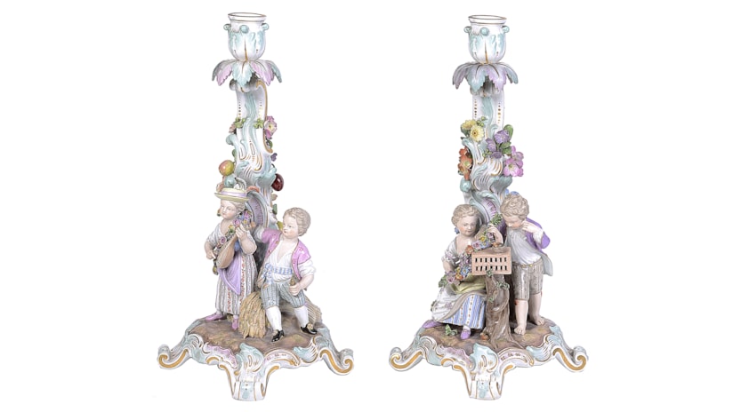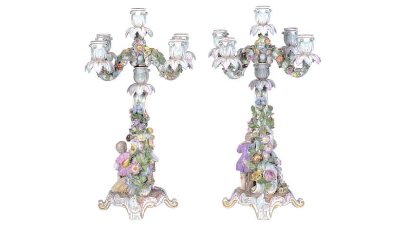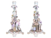 Pair 19th Century Meissen porcelain candelabra.