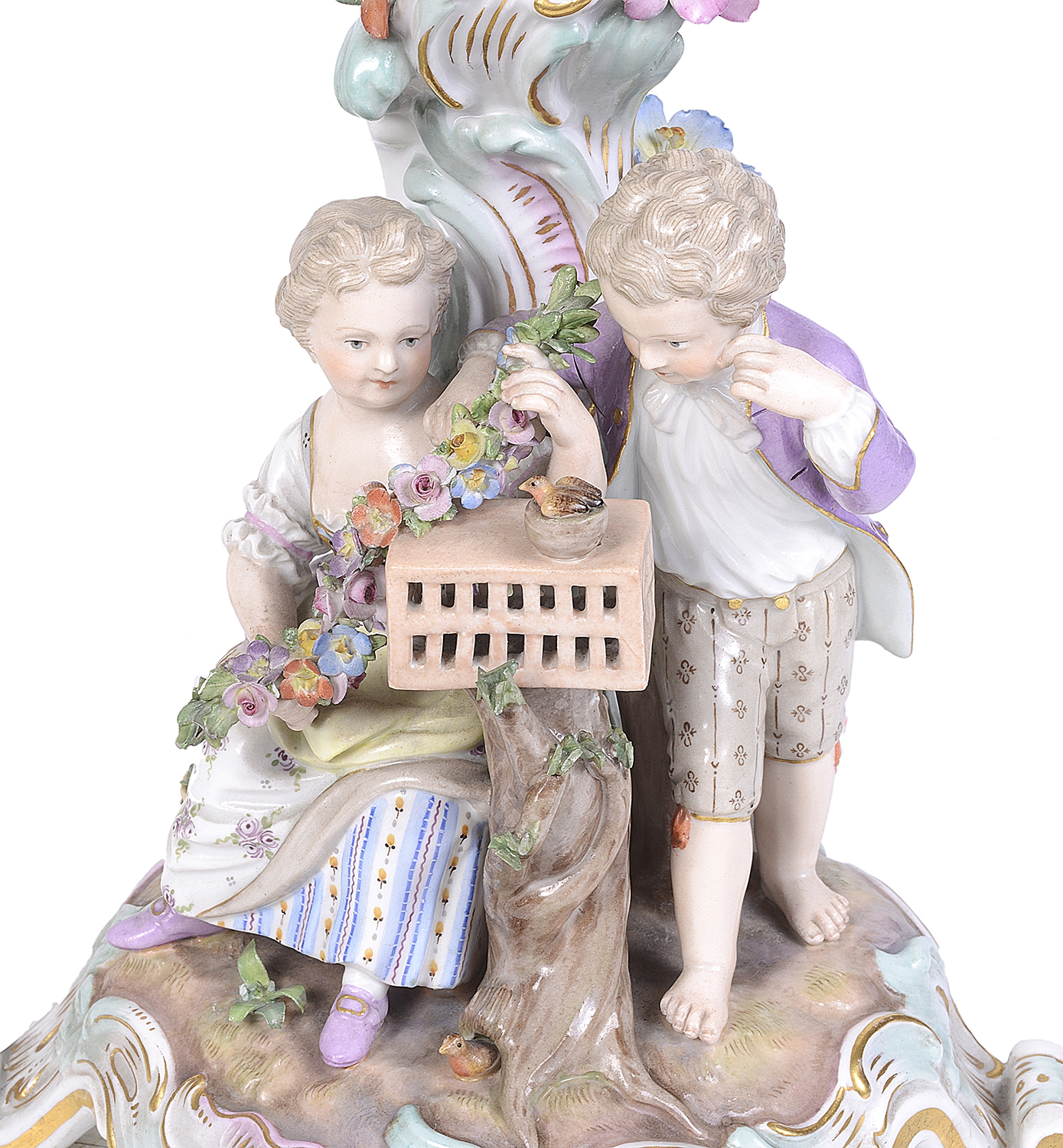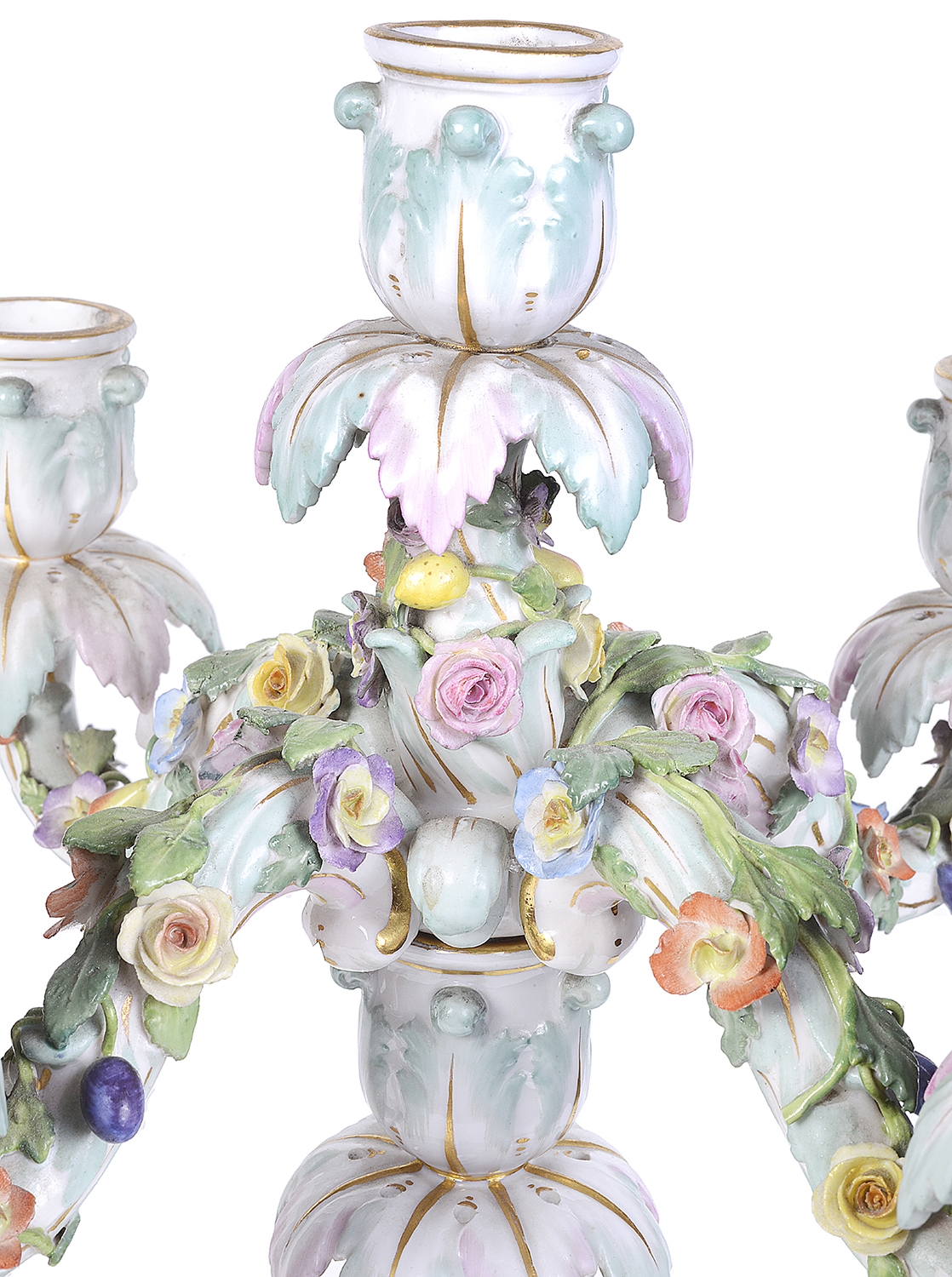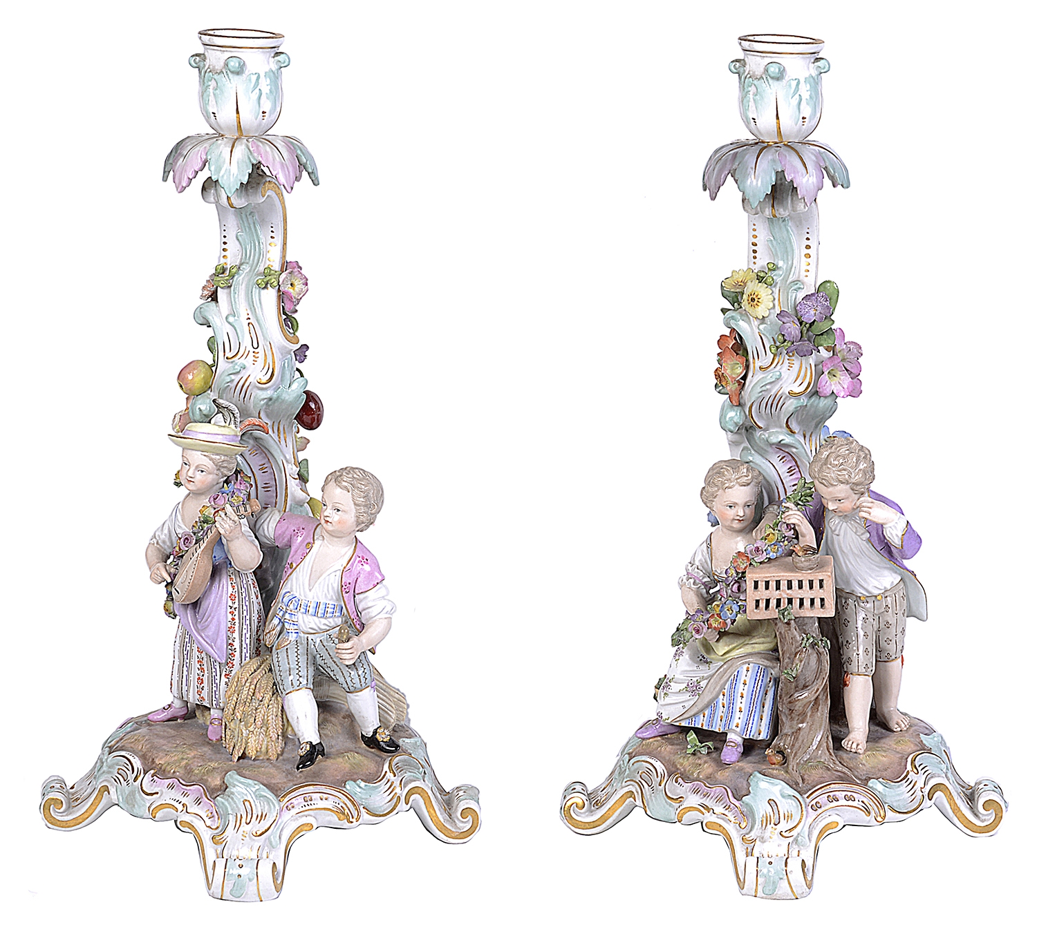 Pair 19th Century Meissen porcelain candelabra.