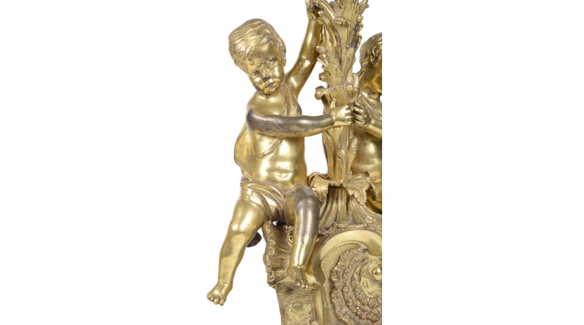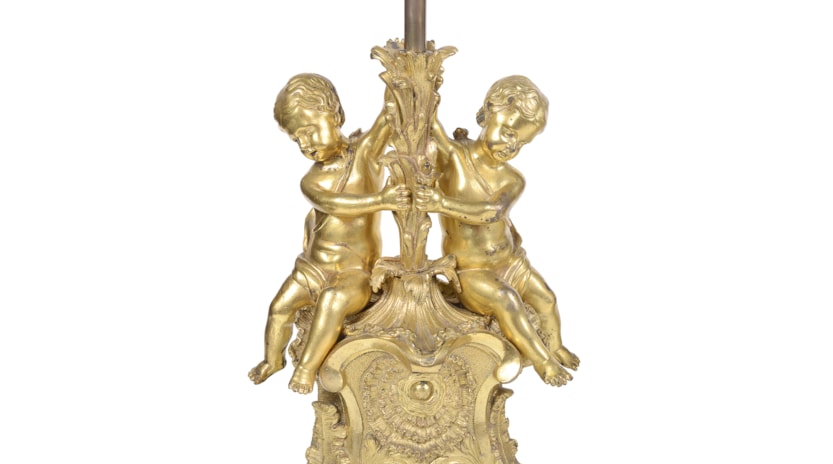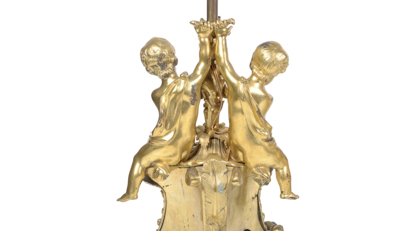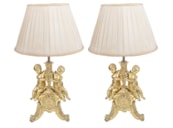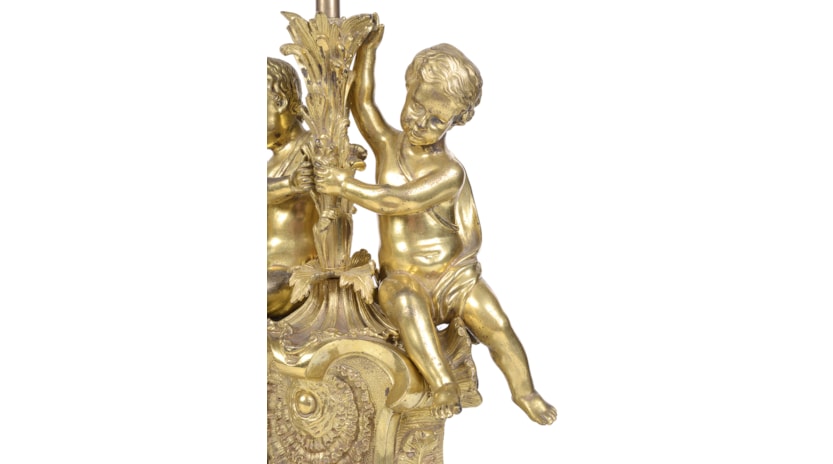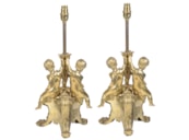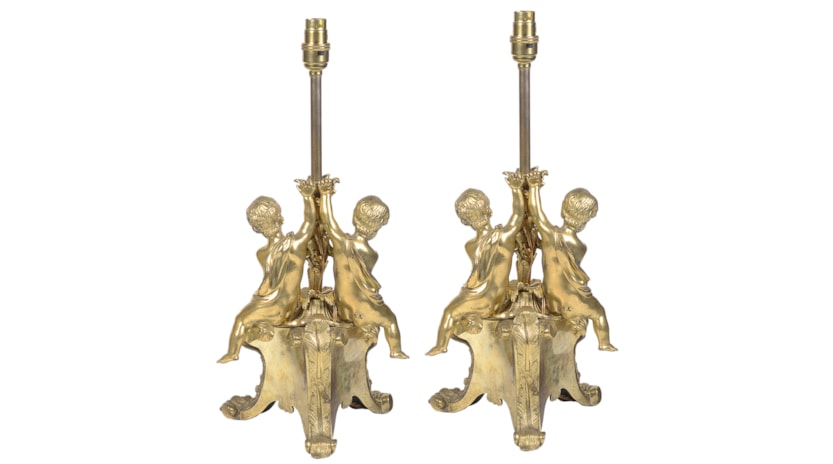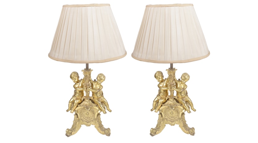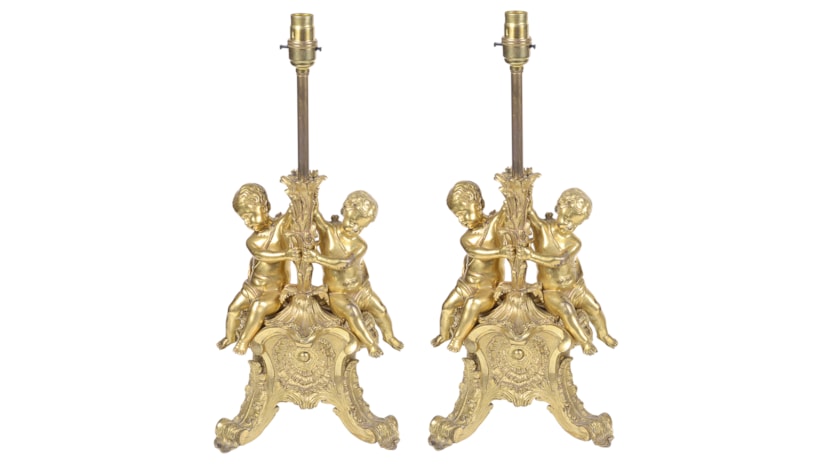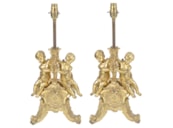 Pair late 19th Century French gilded ormolu cherub lamps.