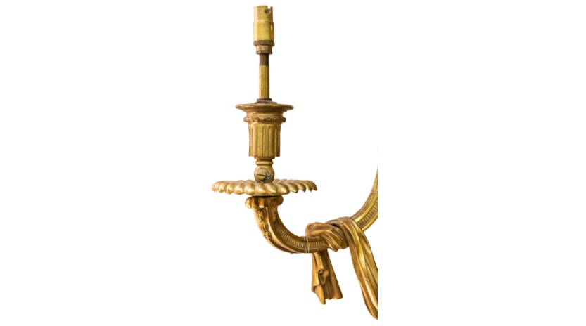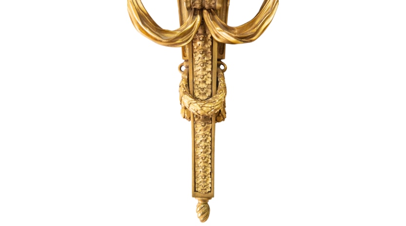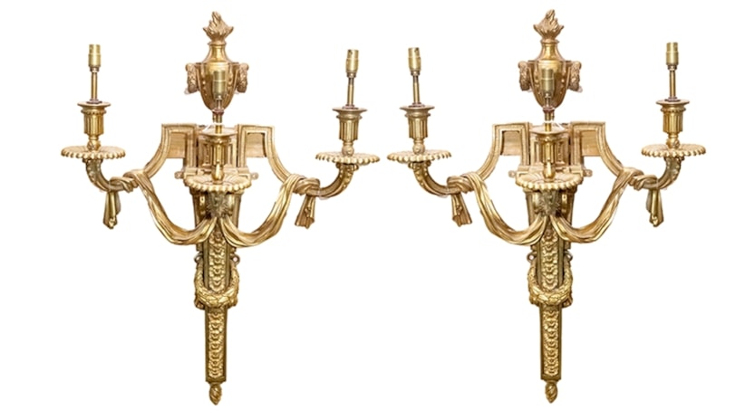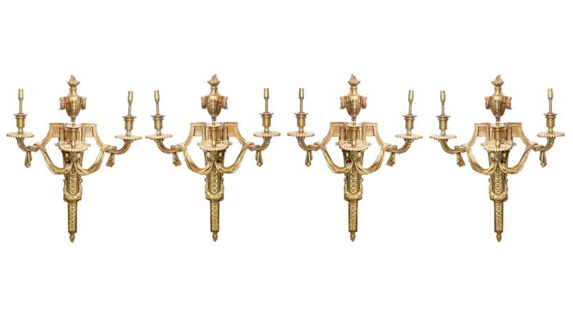 Four classical French Louis XVI style ormolu wall lights, late 19th century