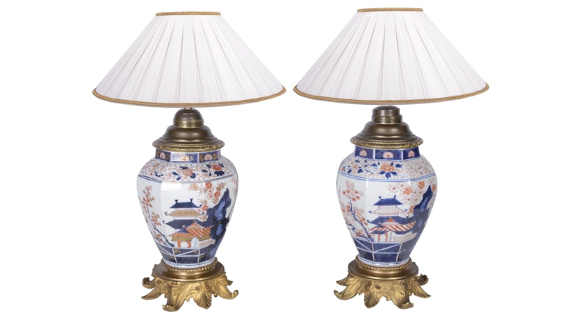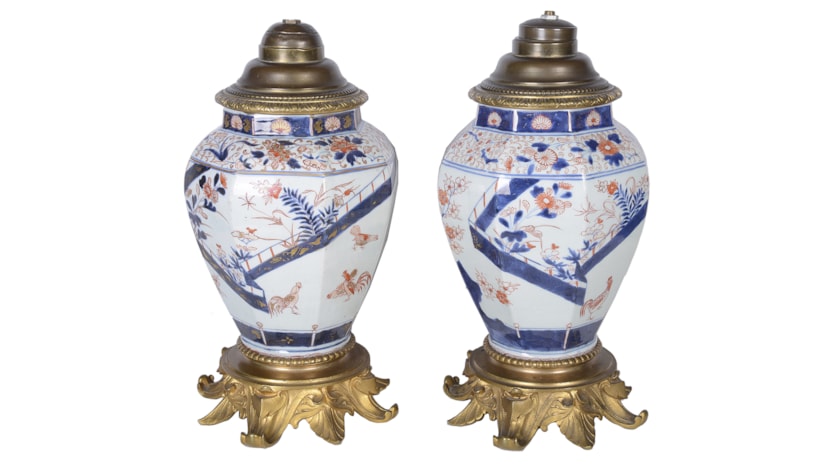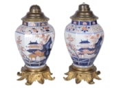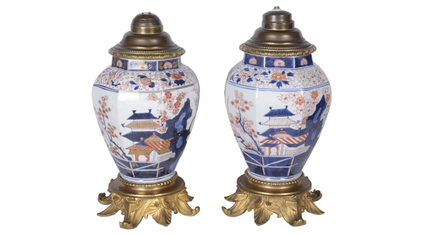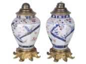 Pair 18th Century Japanese Arita Imari vases / lamps