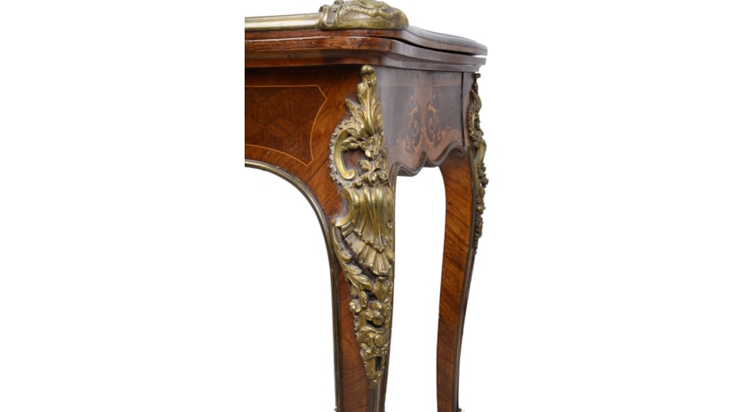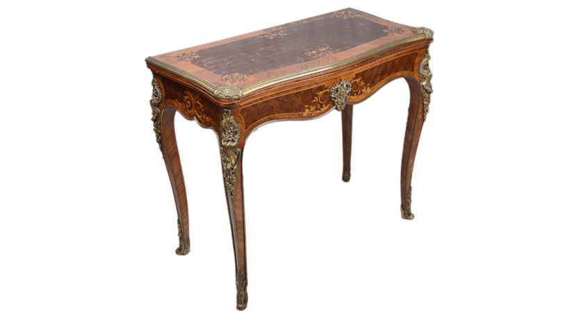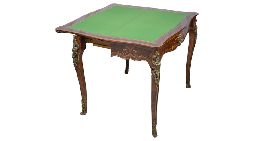 French 19th Century Marquetry inlaid games/card table, Edwards + Roberts.