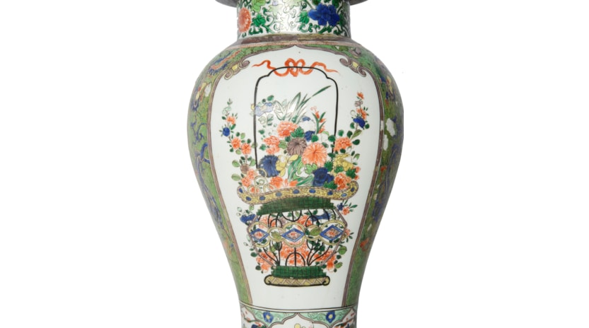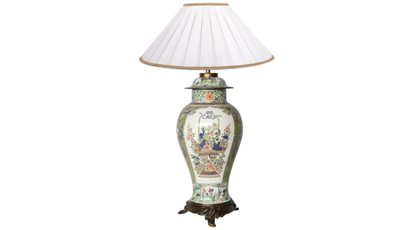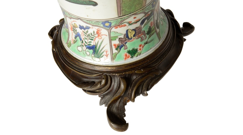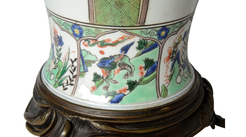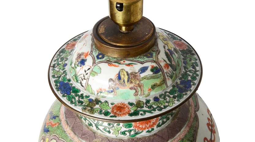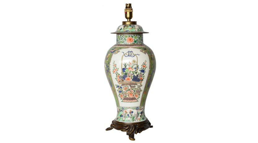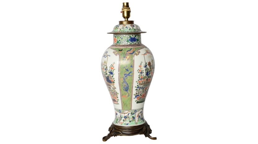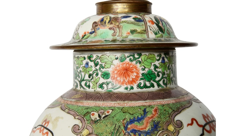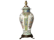 Early 19th Century Samson Famille Verte style lidded vase / lamp.