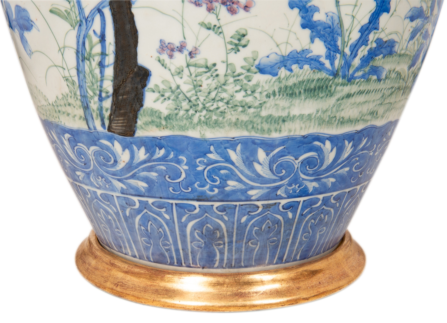 Large Pair of Japanese Yokohama Porcelain Vases / Lamps, circa 1920