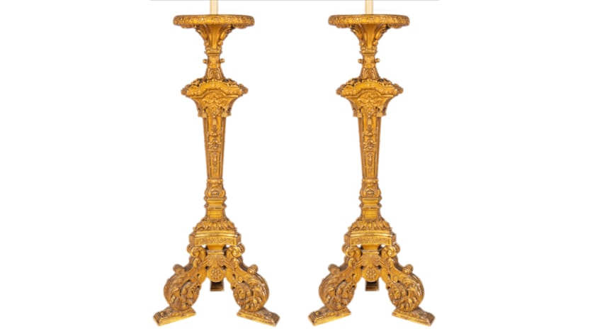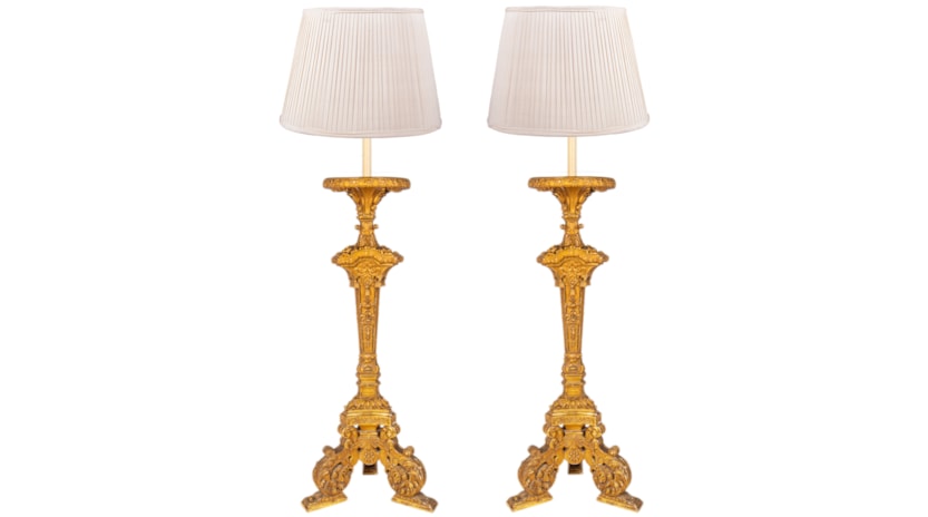 Home > Pair of 19th Century carved giltwood torchas / lamps