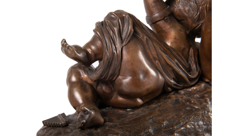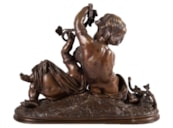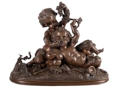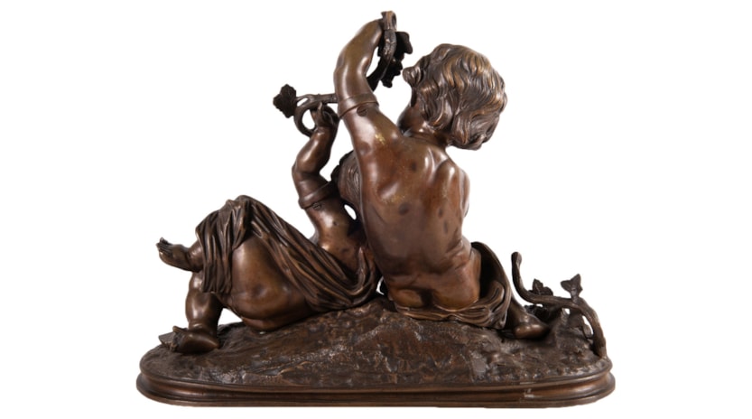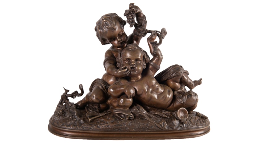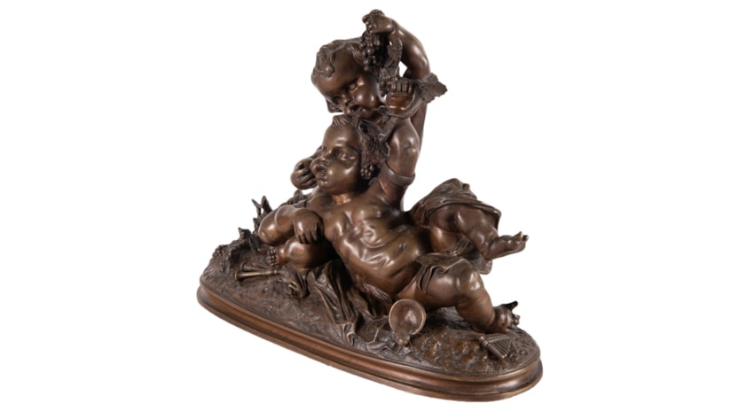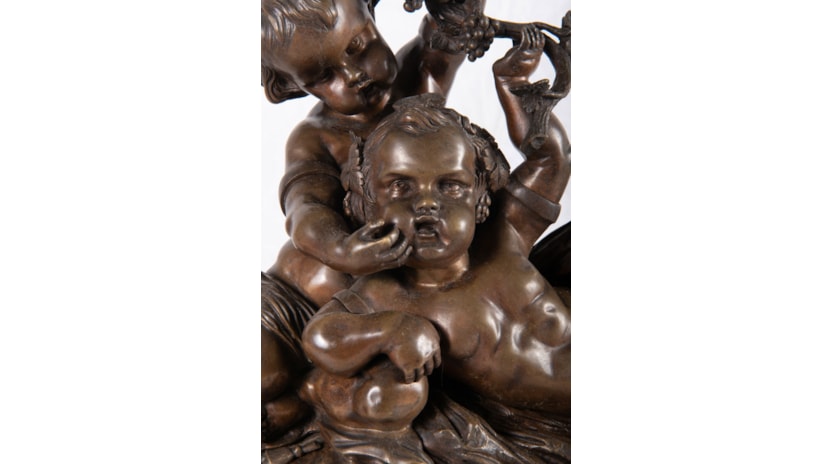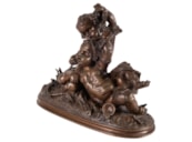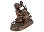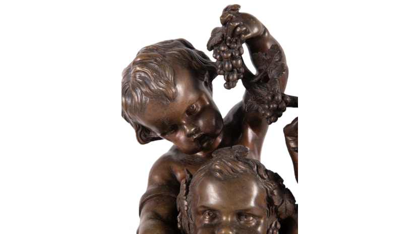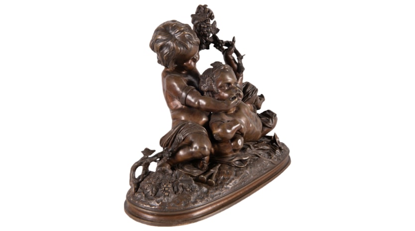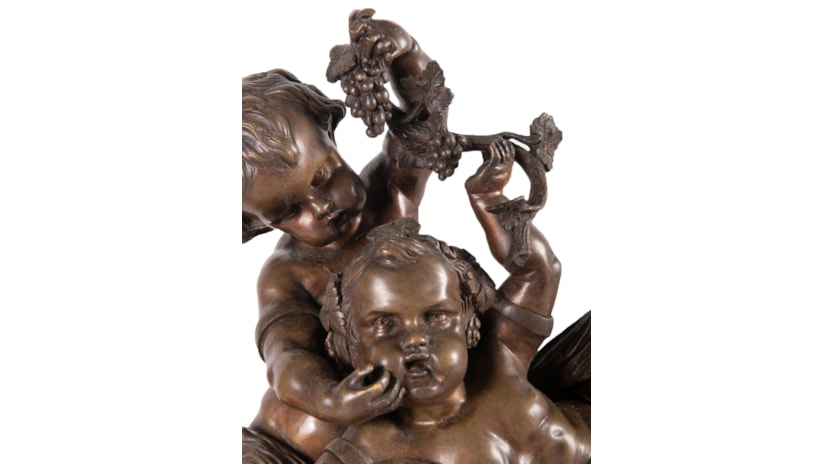19th Century bronze Bacchus group of two putti playing with grapes.