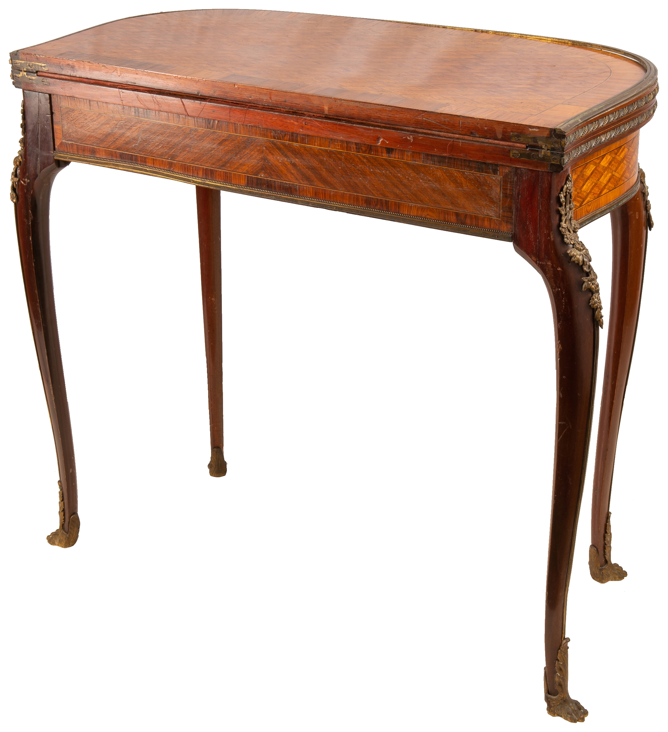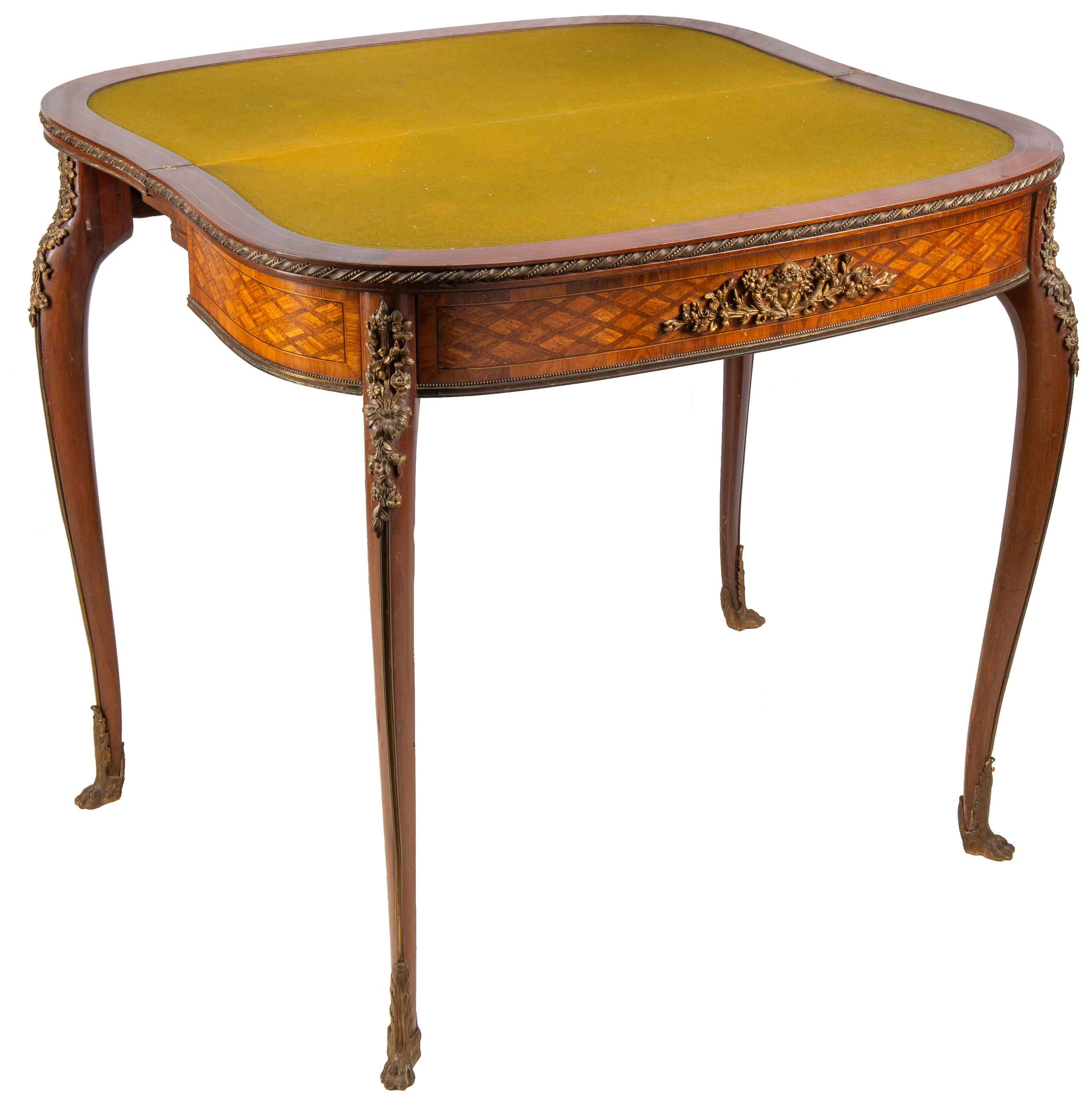 Louis XVI style parquetry inlaid card table, circa 1890 Linke style.
