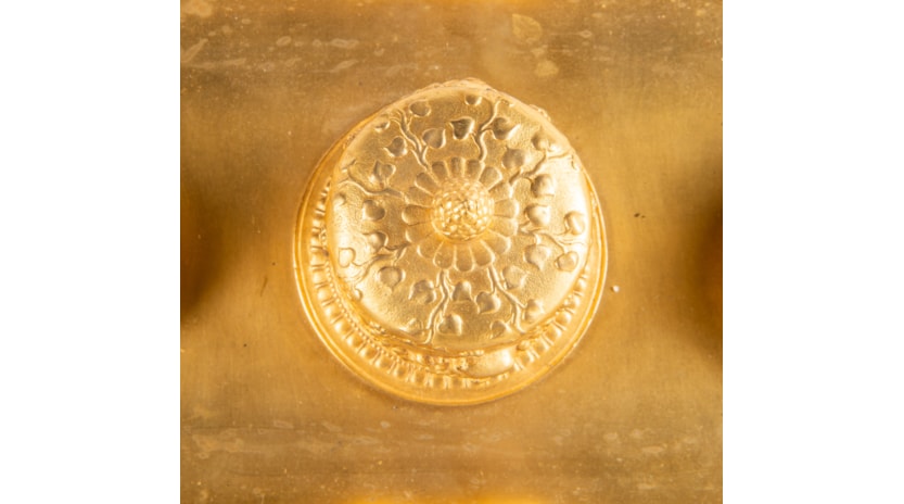 C19th Grand tour influenced gilded ormolu ink well. Stamped; Barbedienne