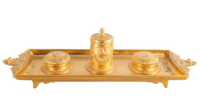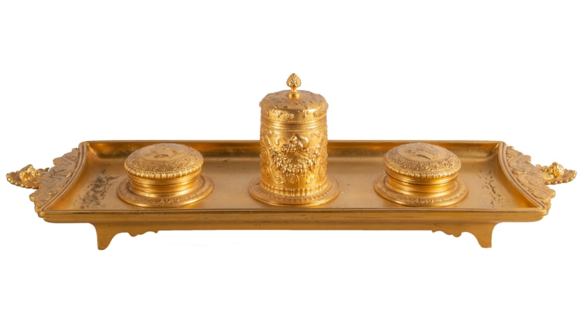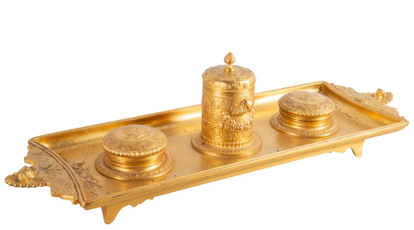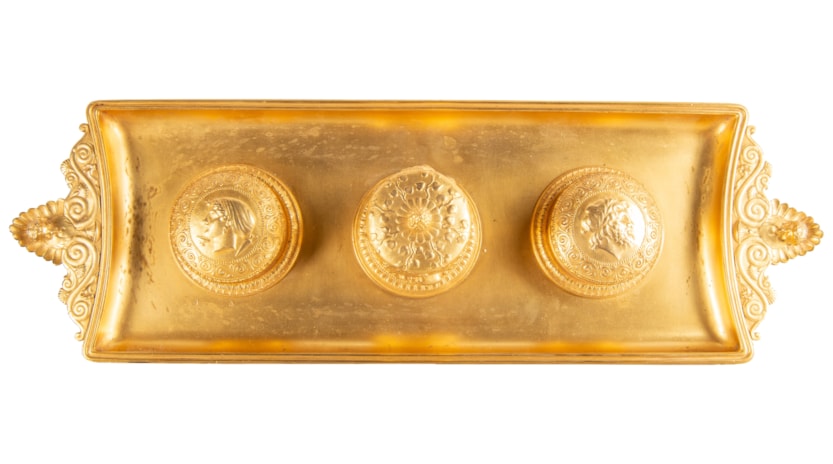 Home > C19th Grand tour influenced gilded ormolu ink well. Stamped; Barbedienne