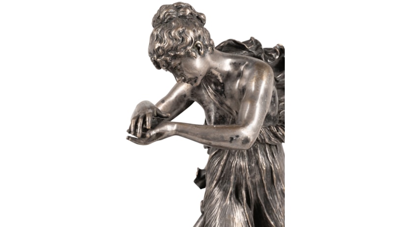 19th Century silvered bronze statue 'The Spring of Life' by A.G.Lanzirotti