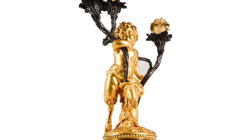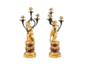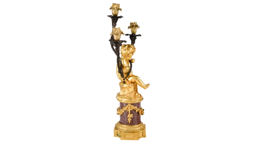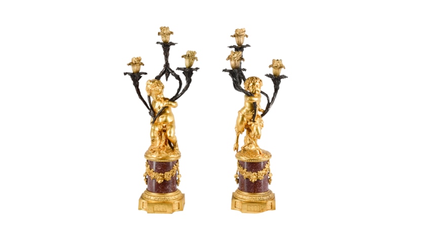 Fine pair 19th Century cherub candelabra on Porphyry bases.