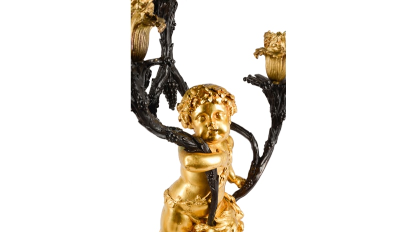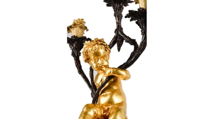 Fine pair 19th Century cherub candelabra on Porphyry bases. 50cm(20")
