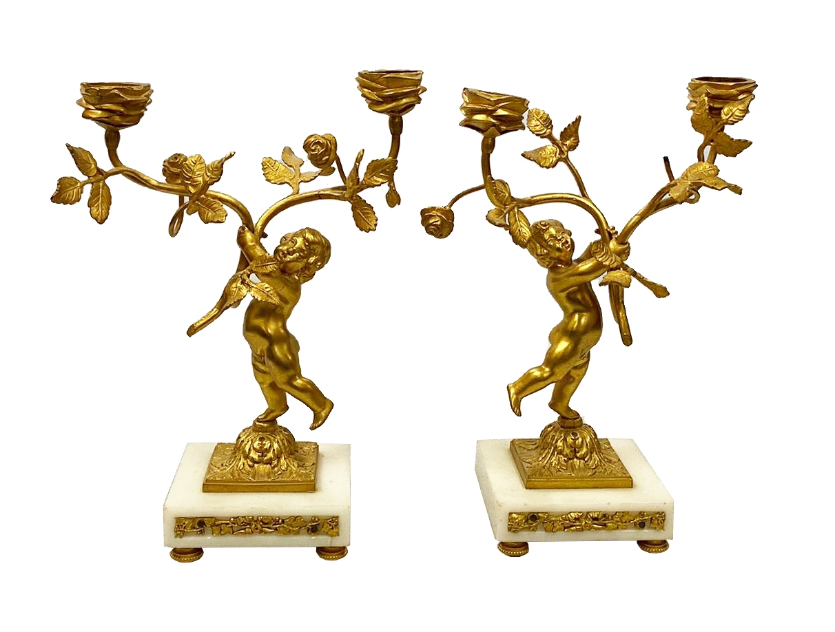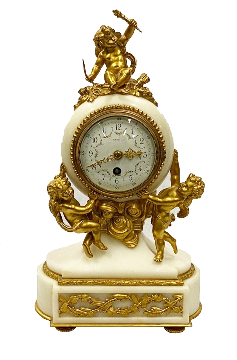 Classical French C19th Louis XVI style clock set. 13" (33cm) high