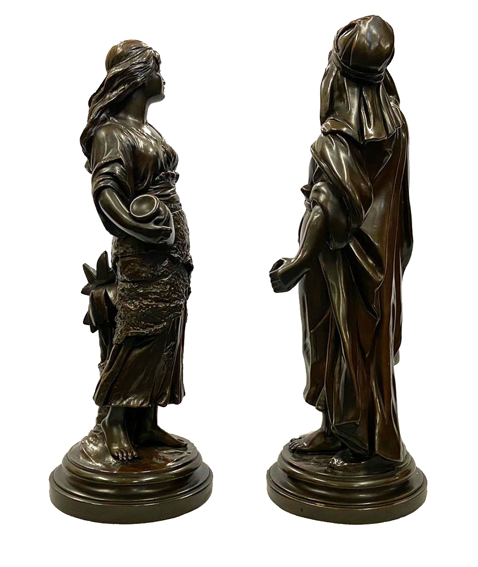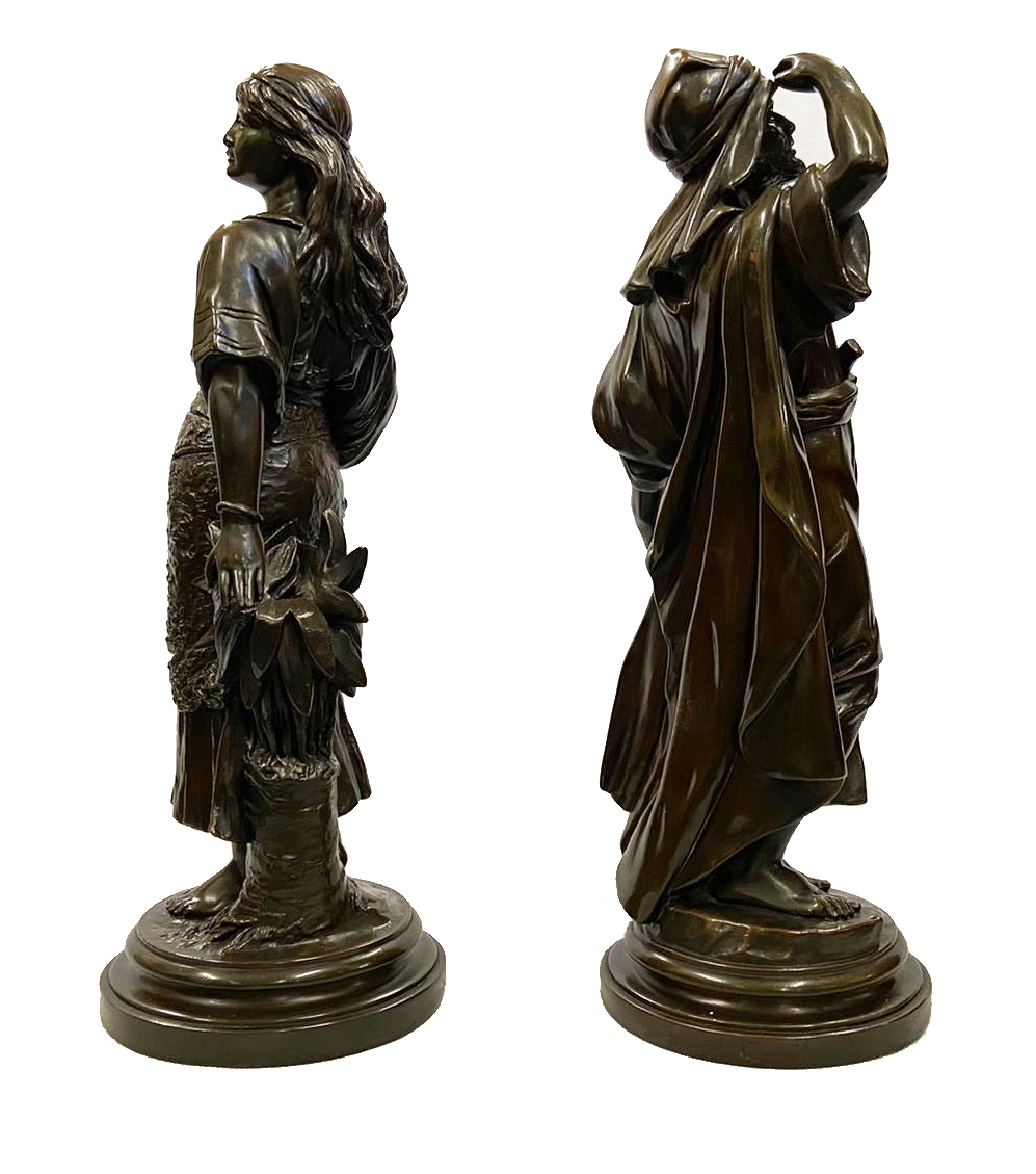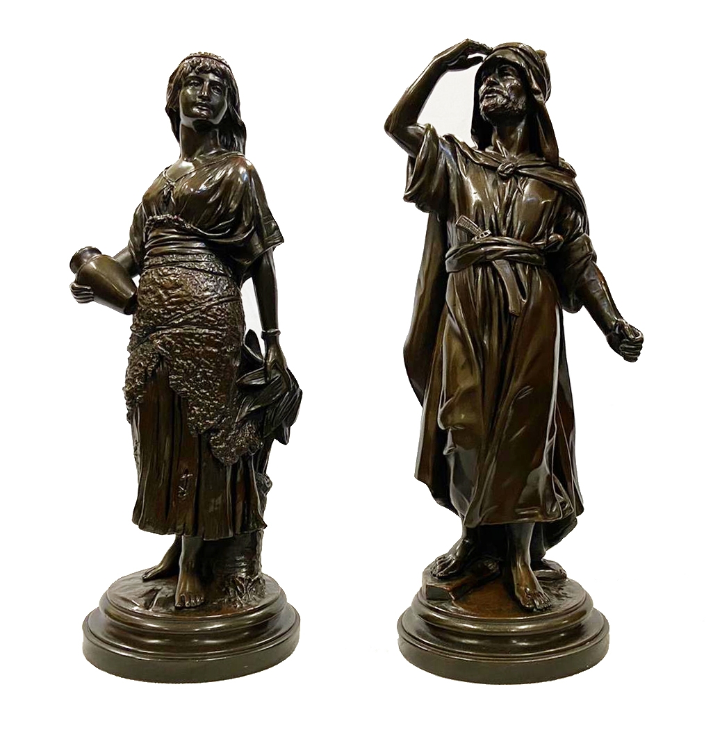 A good quality pair of 19th Century bronze coated classical male and female Arab figures.