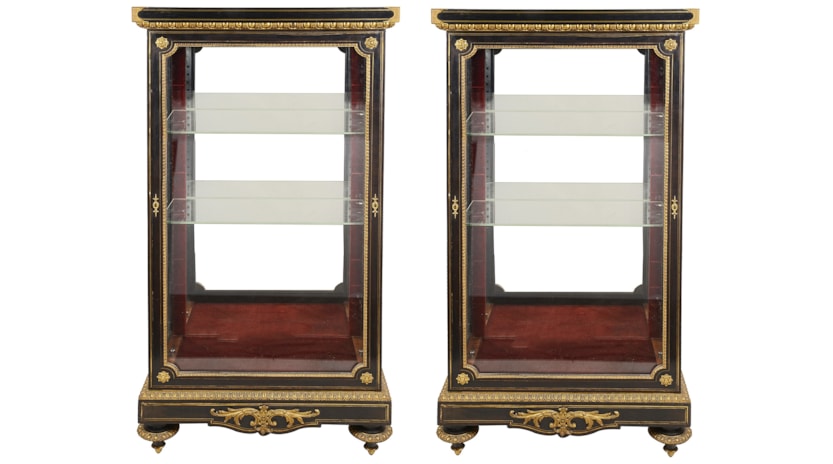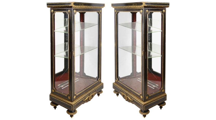 Pair French Ebony and ormolu vitrines, circa 1870.
