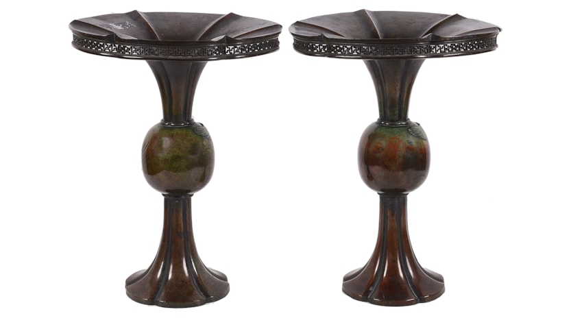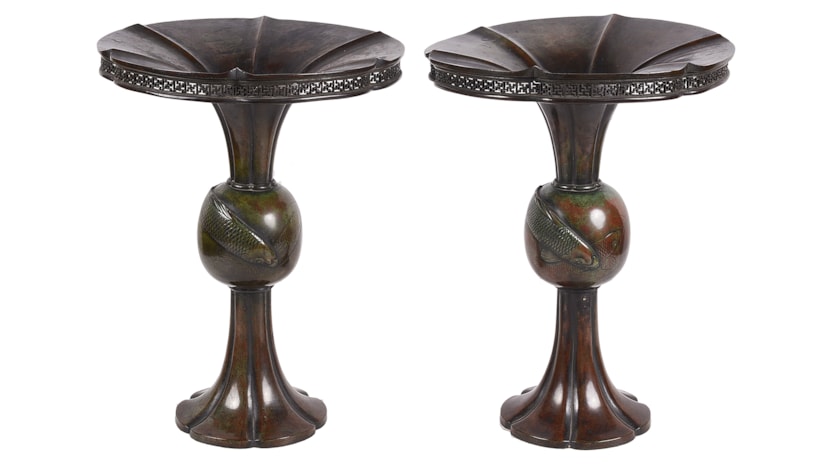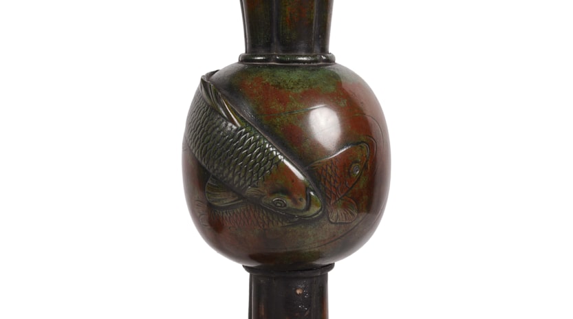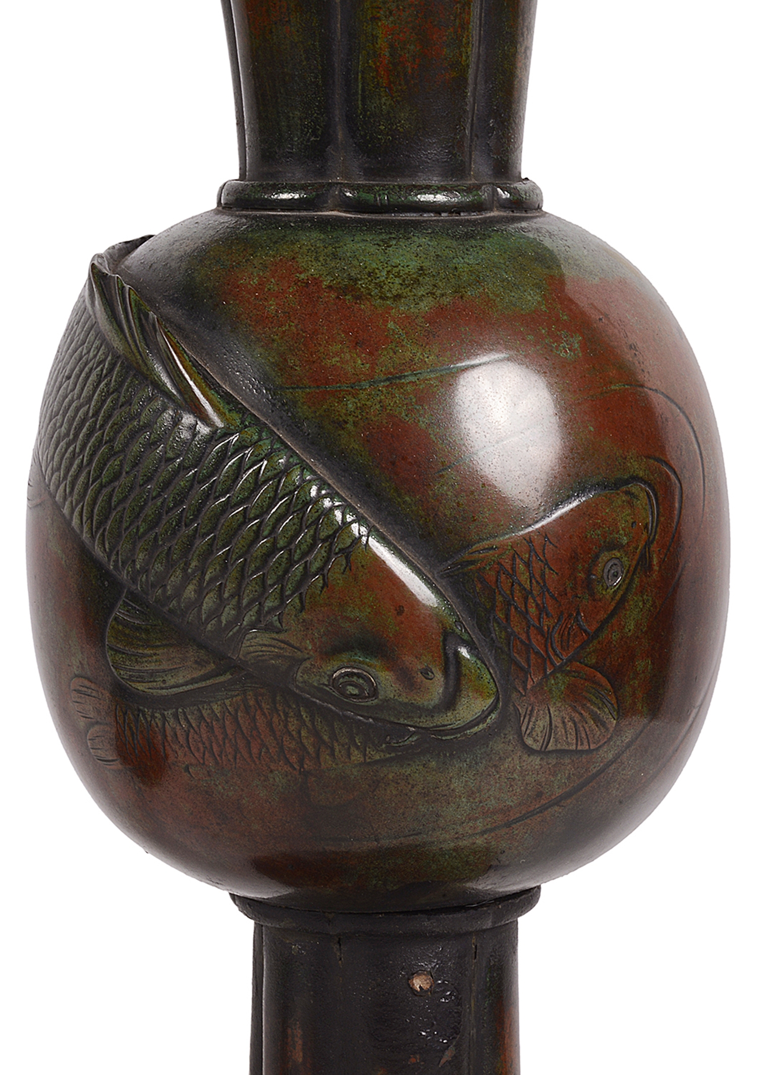 Pair C19th Japanese Meiji period Bronze Carp vases,