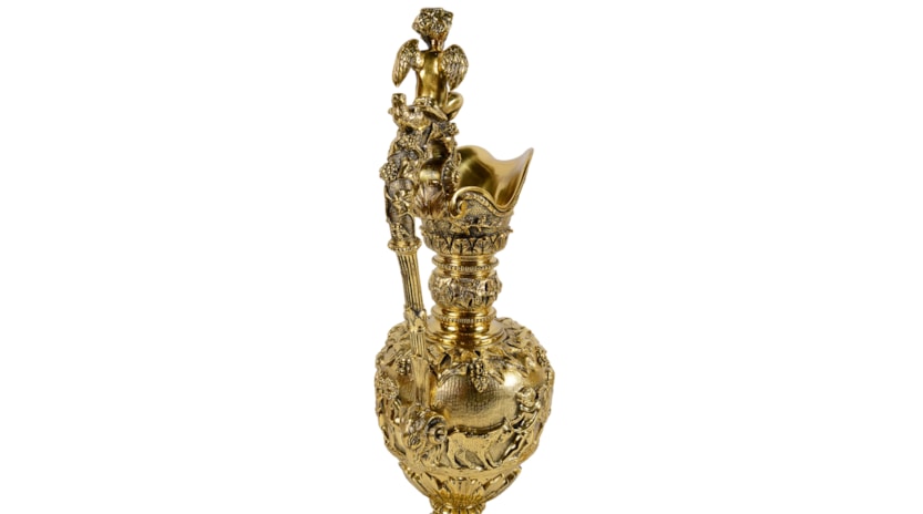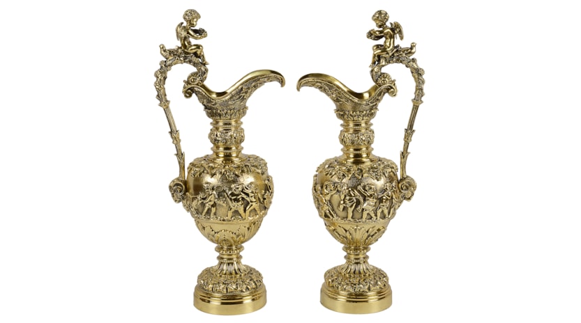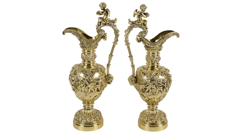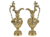Pair Renaissance style Bronze ewers, circa 1880. 23"(58cm) high