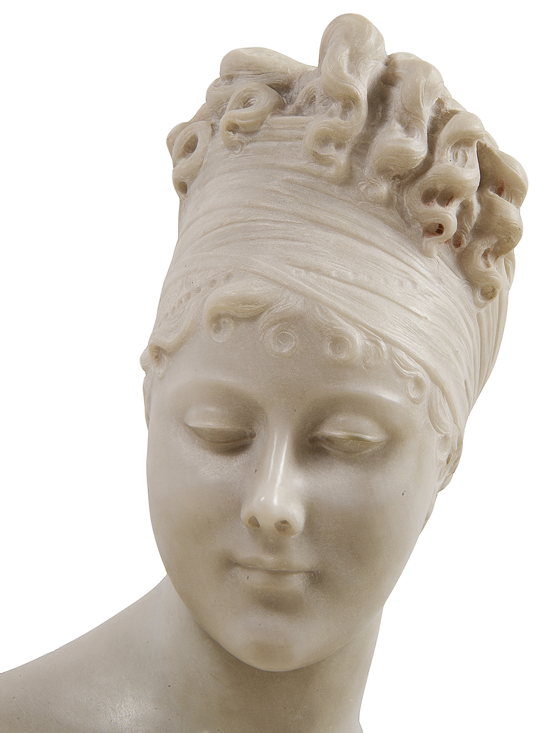 19th Century Marble bust of Madam Recamier, after Chinard.