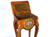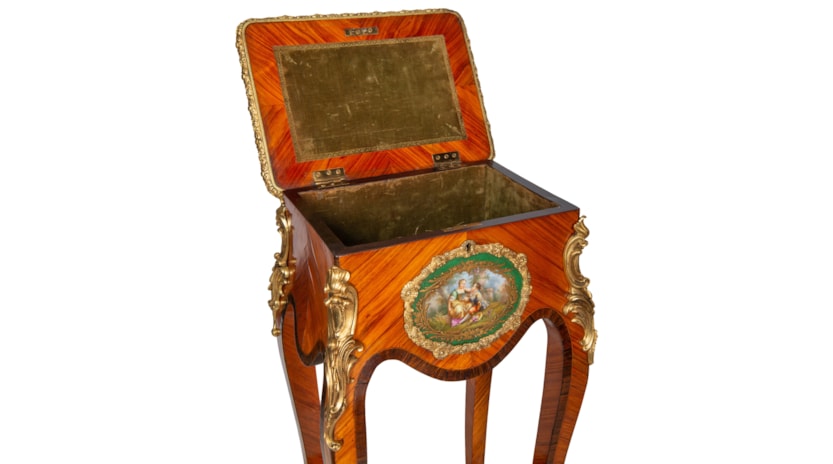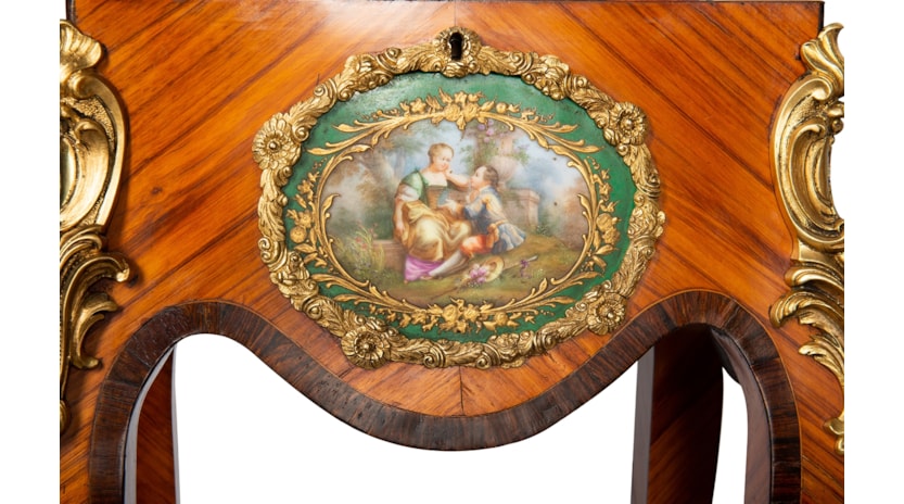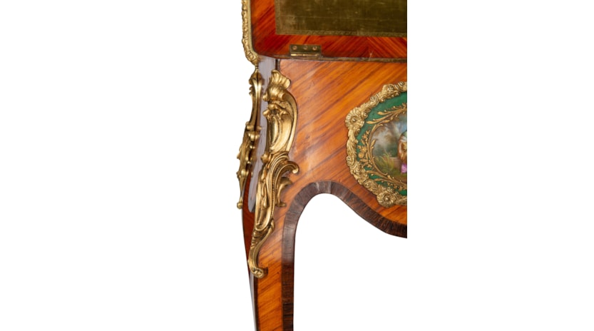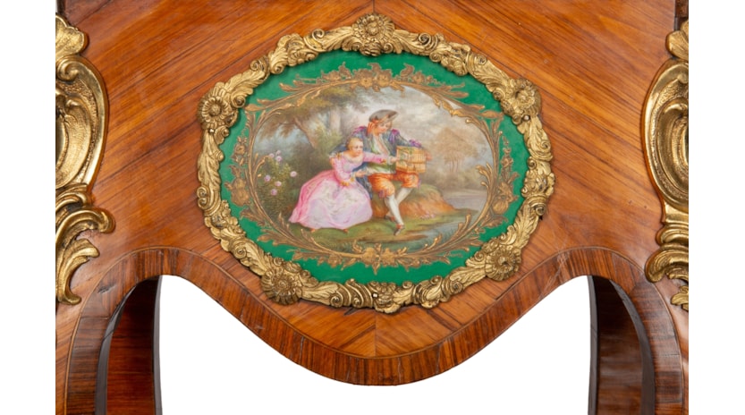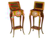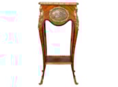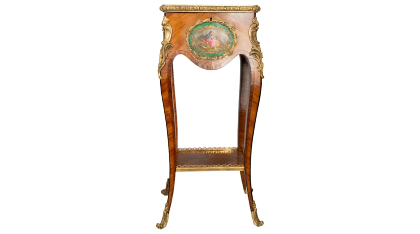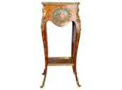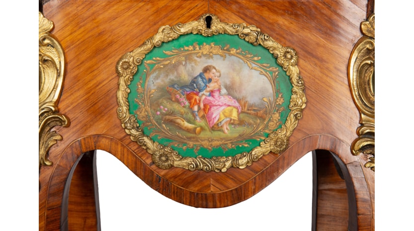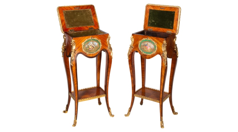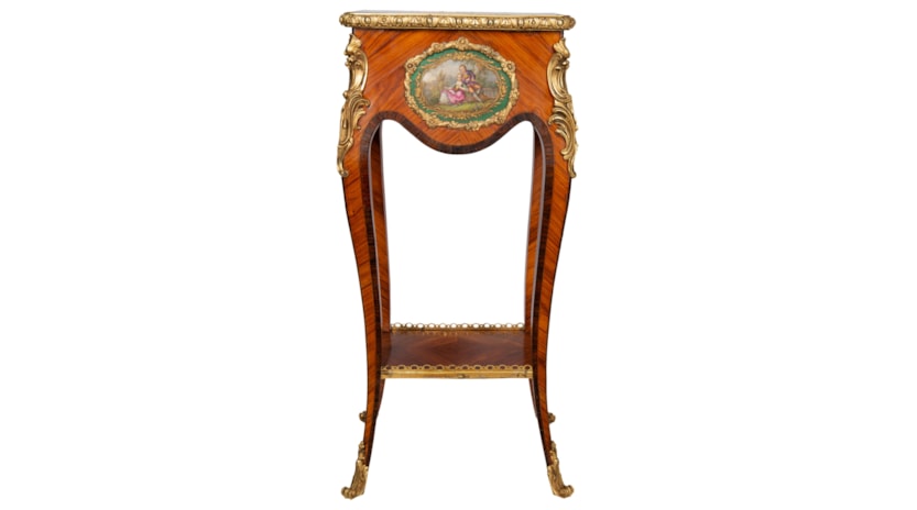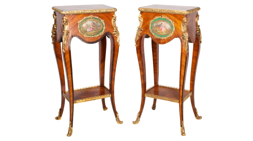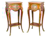 Pair Louis XVI style side tables with porcelain plaques, circa 1890.