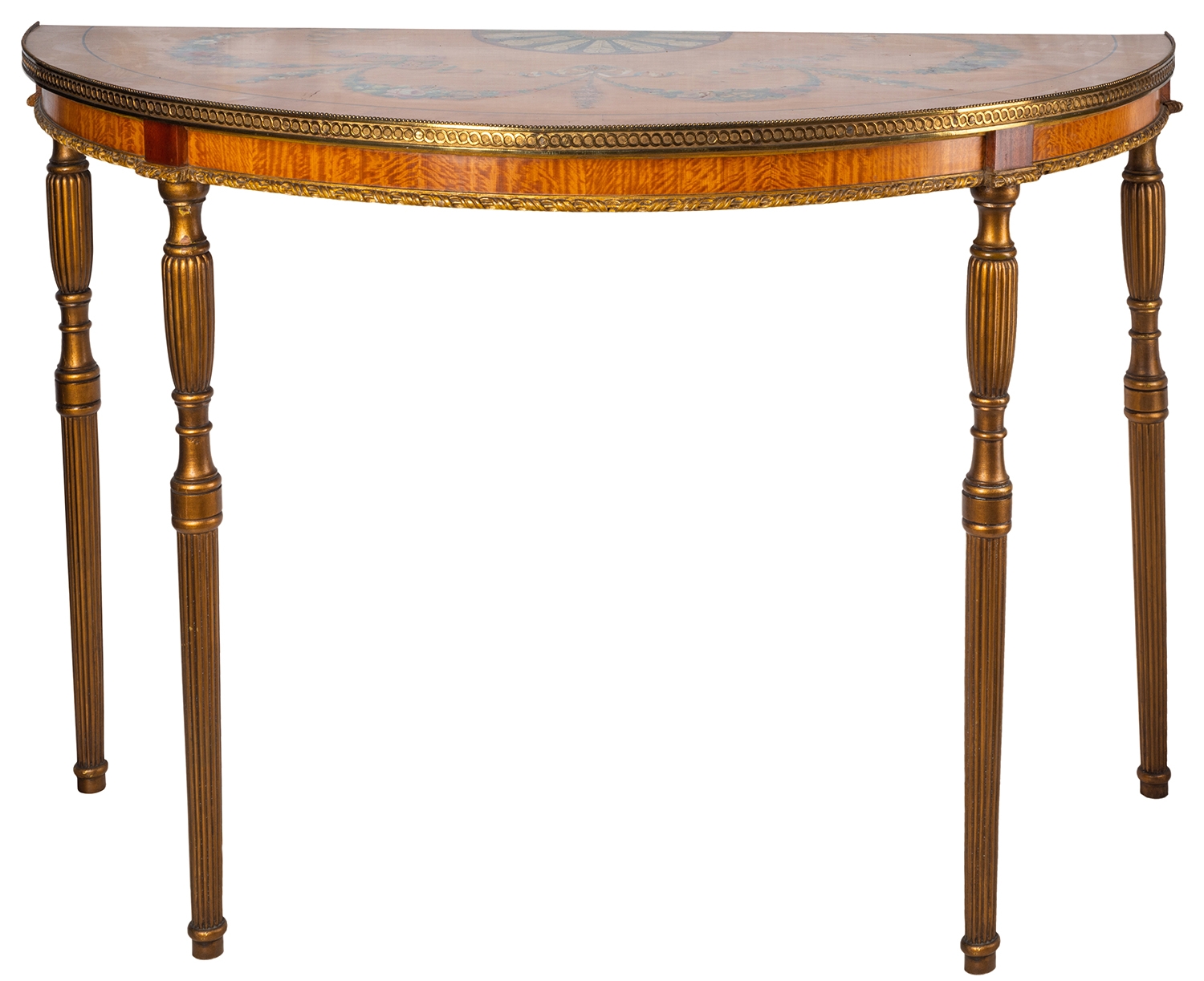 Pair Sheraton revival Satinwood console tables. 130cm(51") wide