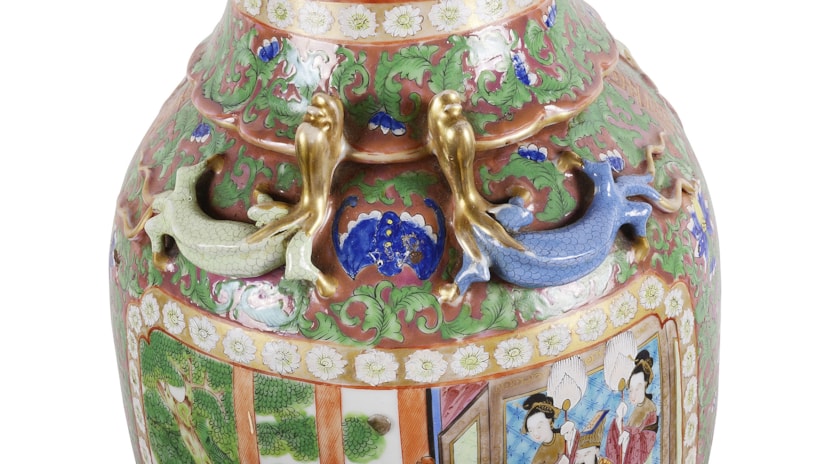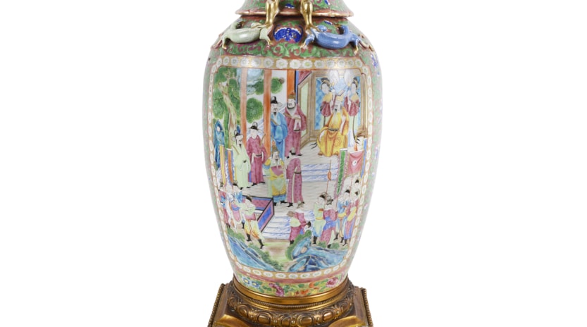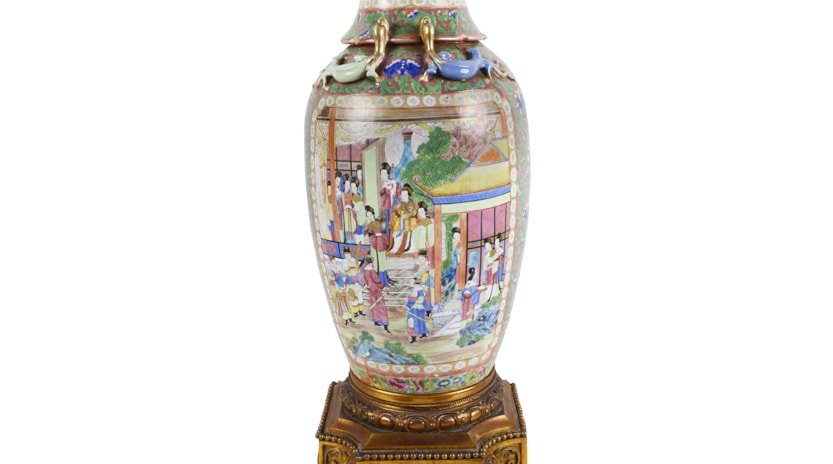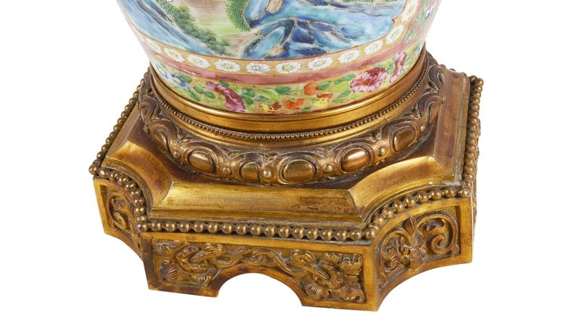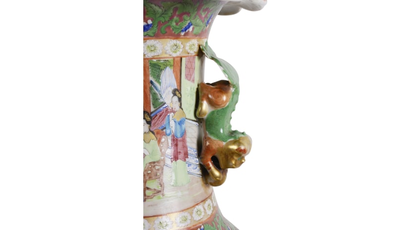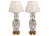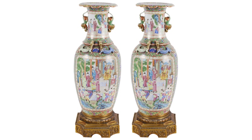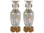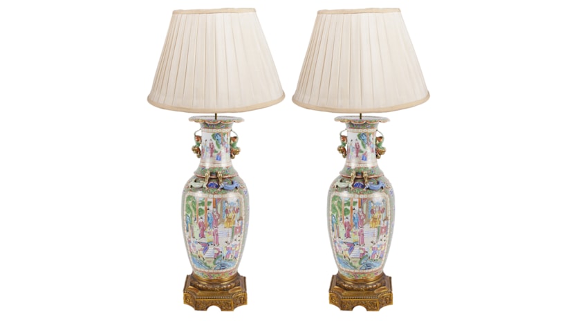 Large Pair of Canton / Rose Medallion Vases or Lamps, 19th Century