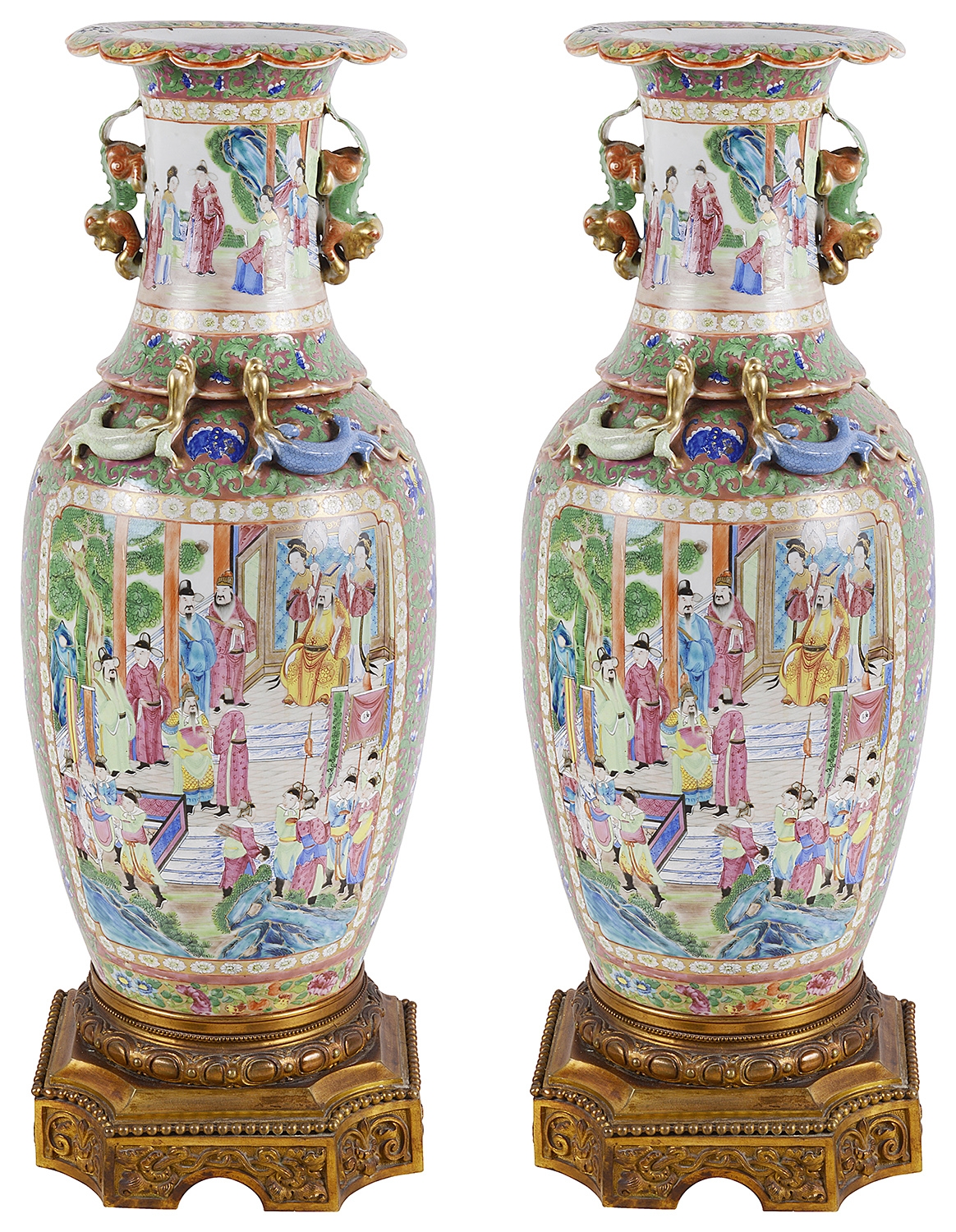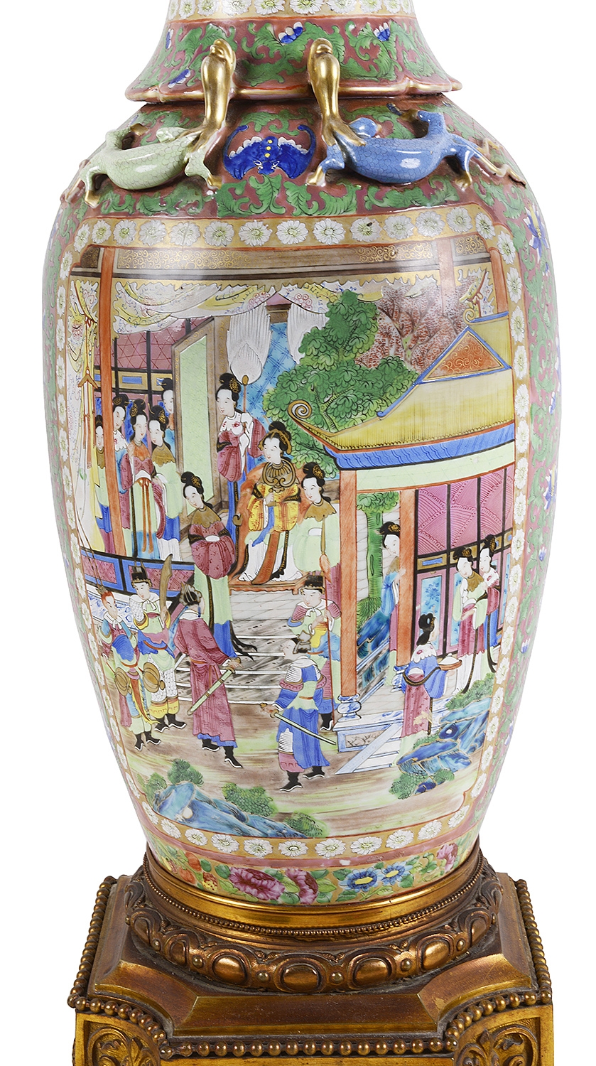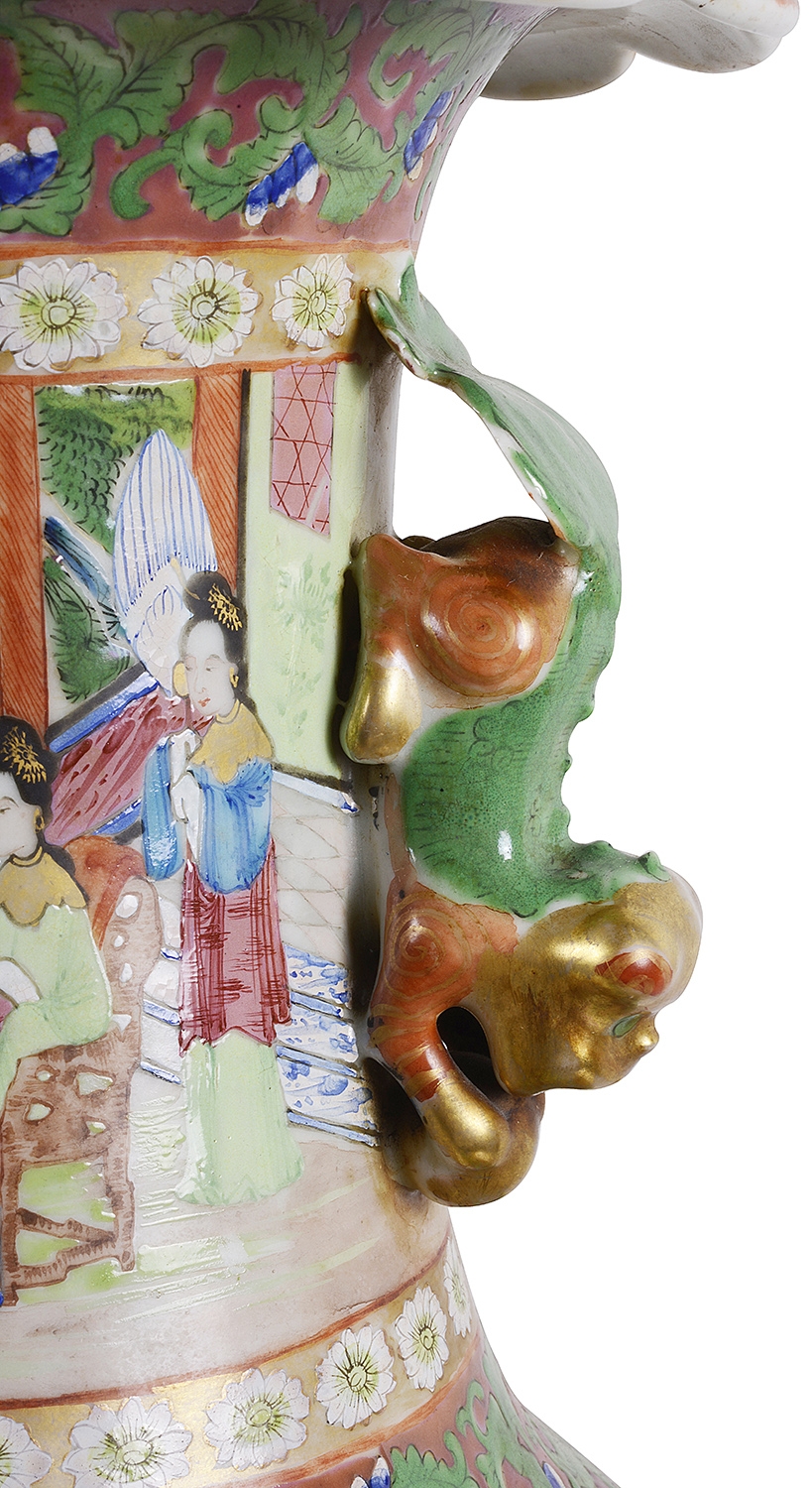 Large Pair of Canton / Rose Medallion Vases or Lamps, 19th Century. Vases 28.35 in. (72 cm) high