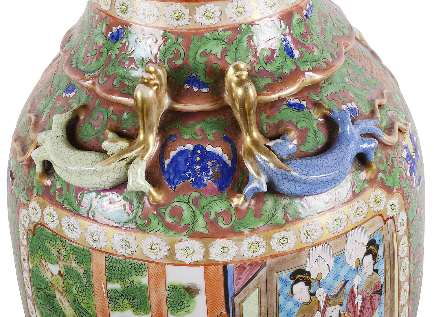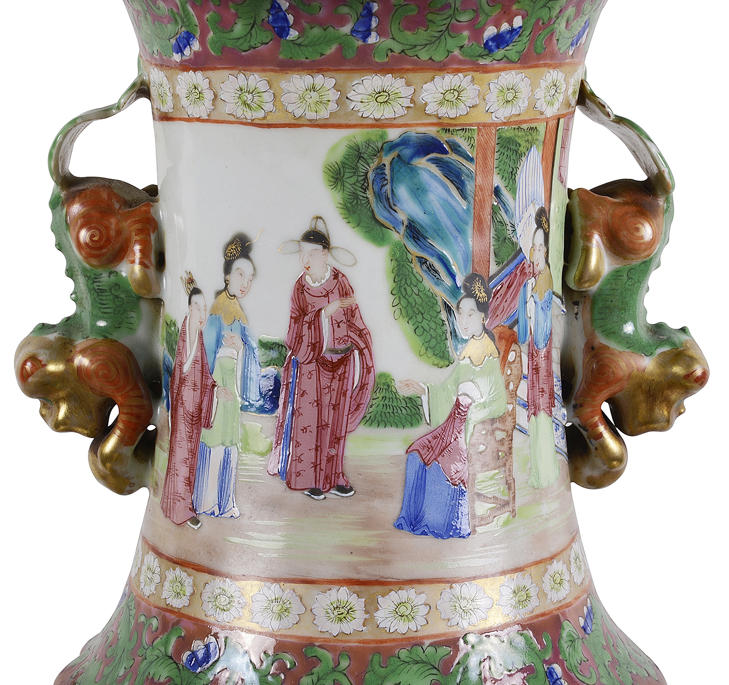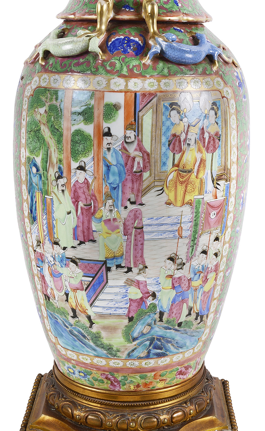 Large Pair of Canton / Rose Medallion Vases or Lamps, 19th Century. Vases 28.35 in. (72 cm) high
