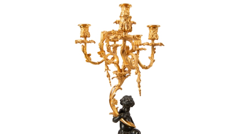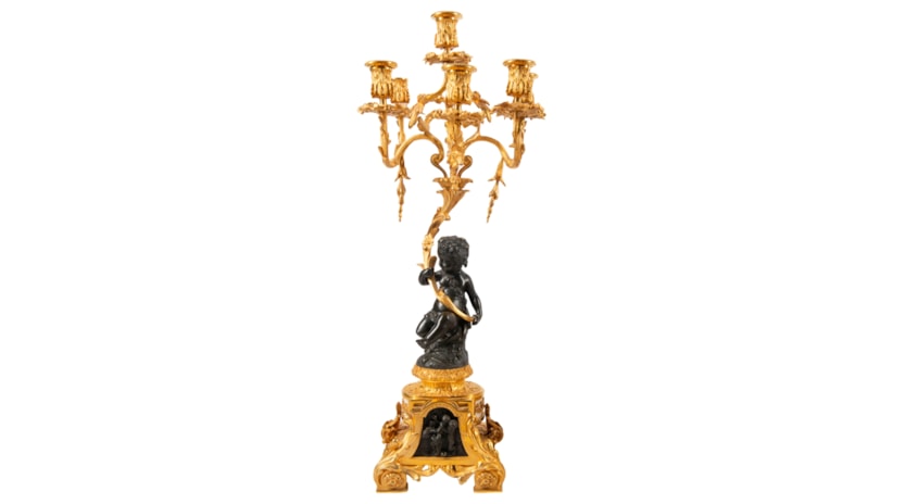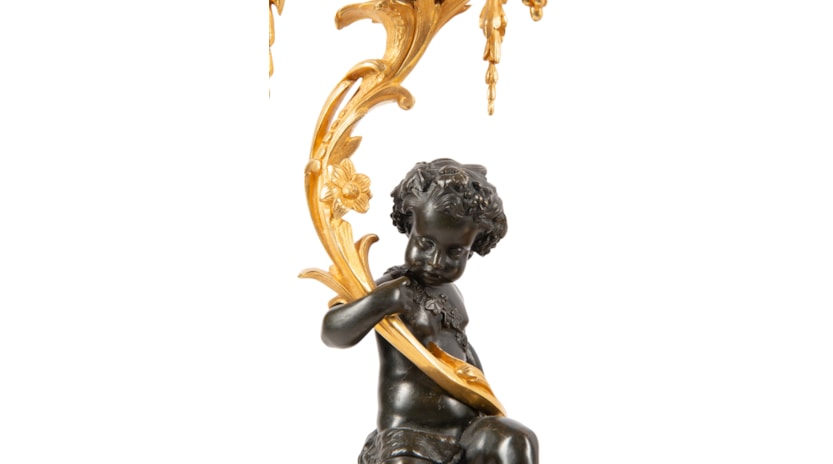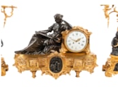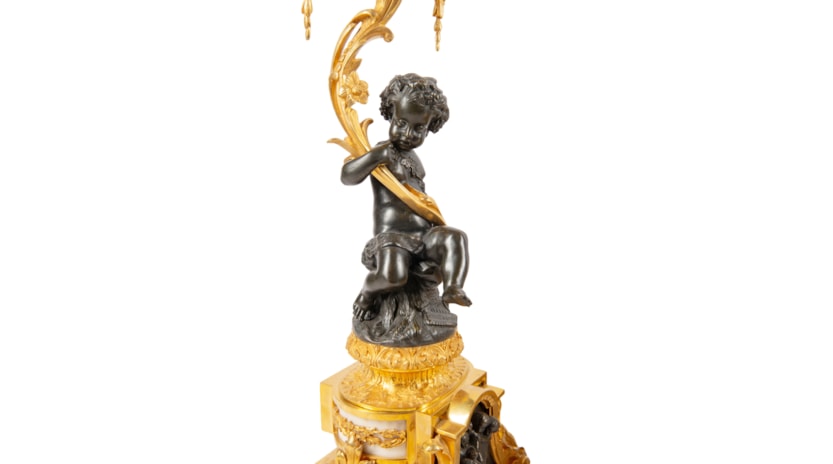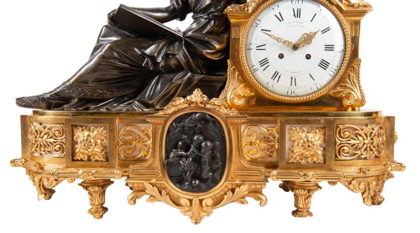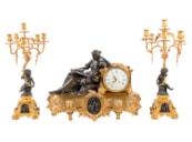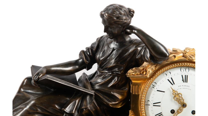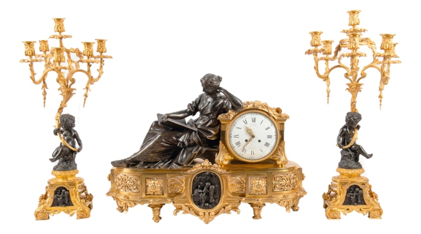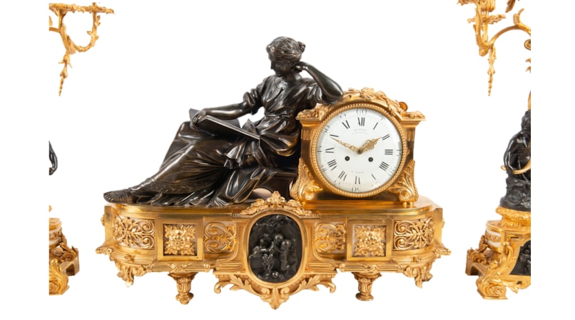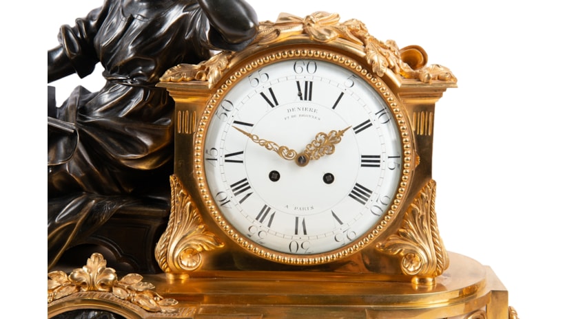 Large 19th Century gilded ormolu and bronze clock set, by Deniere, Paris