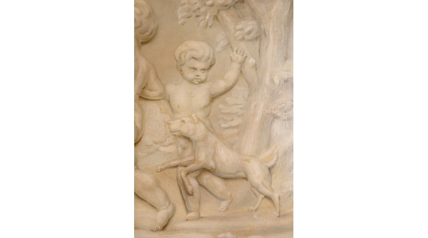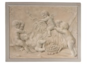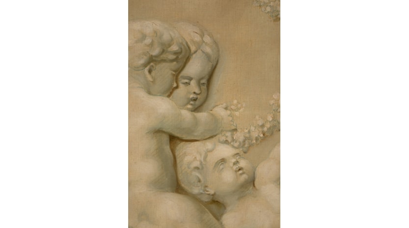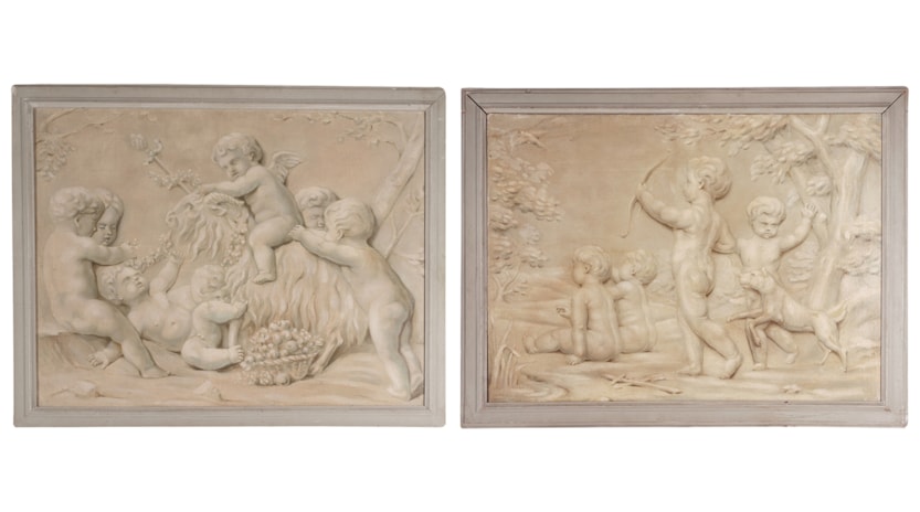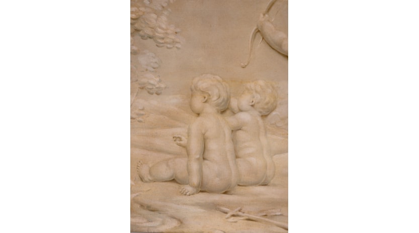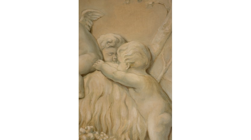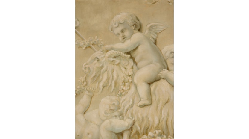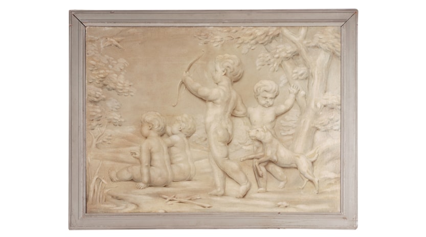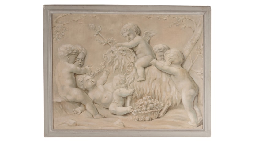 Pair of trompe l'oeil painting of cherubs playing, 19th Century.