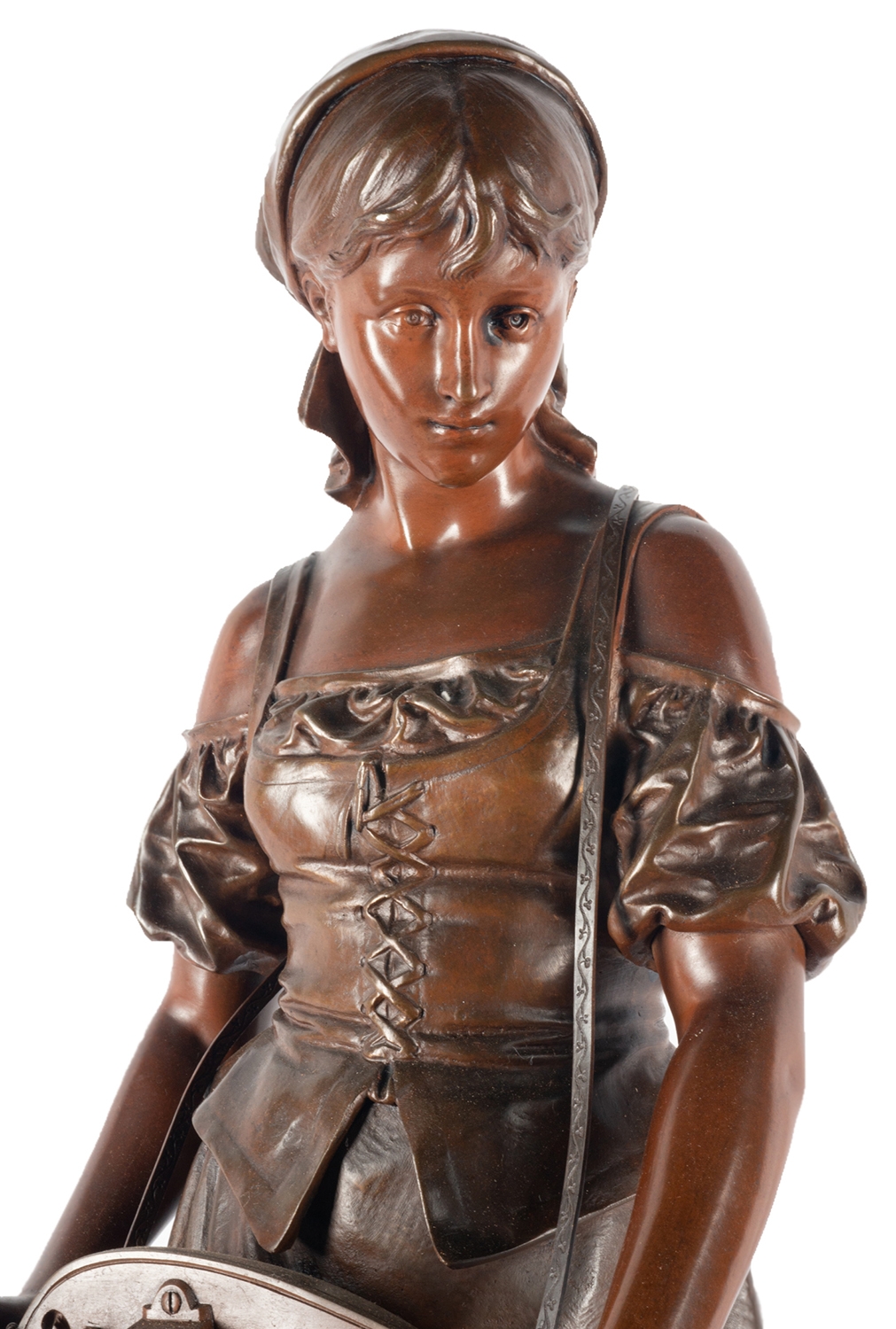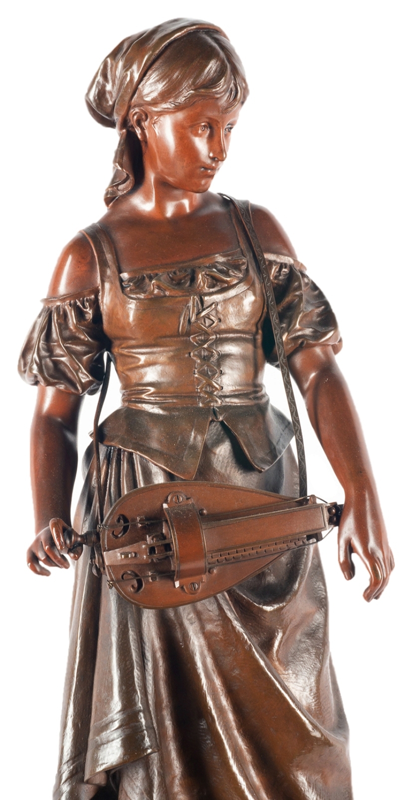 Eutrope Bouret bronze statue of Gypsy girl musician.