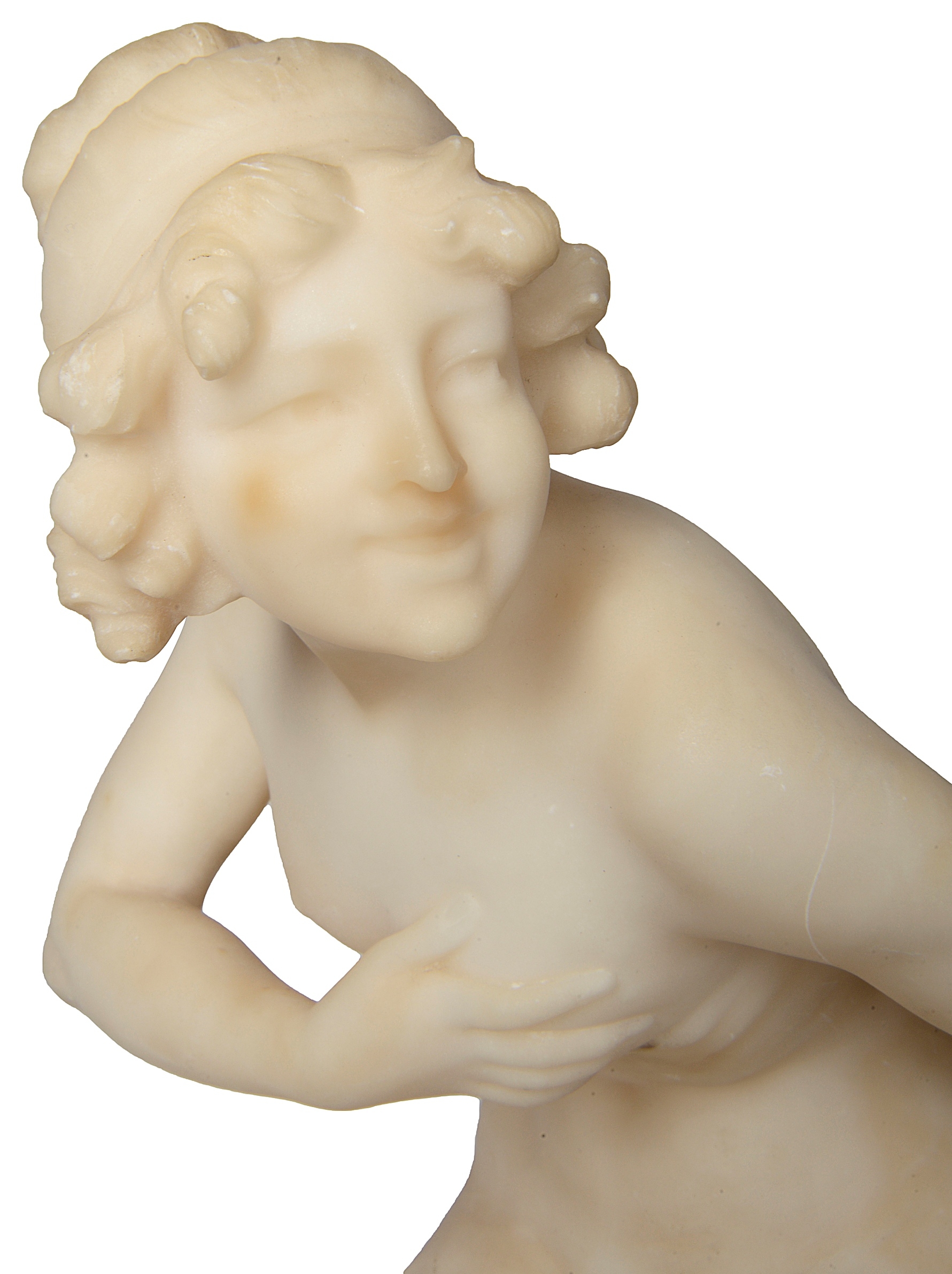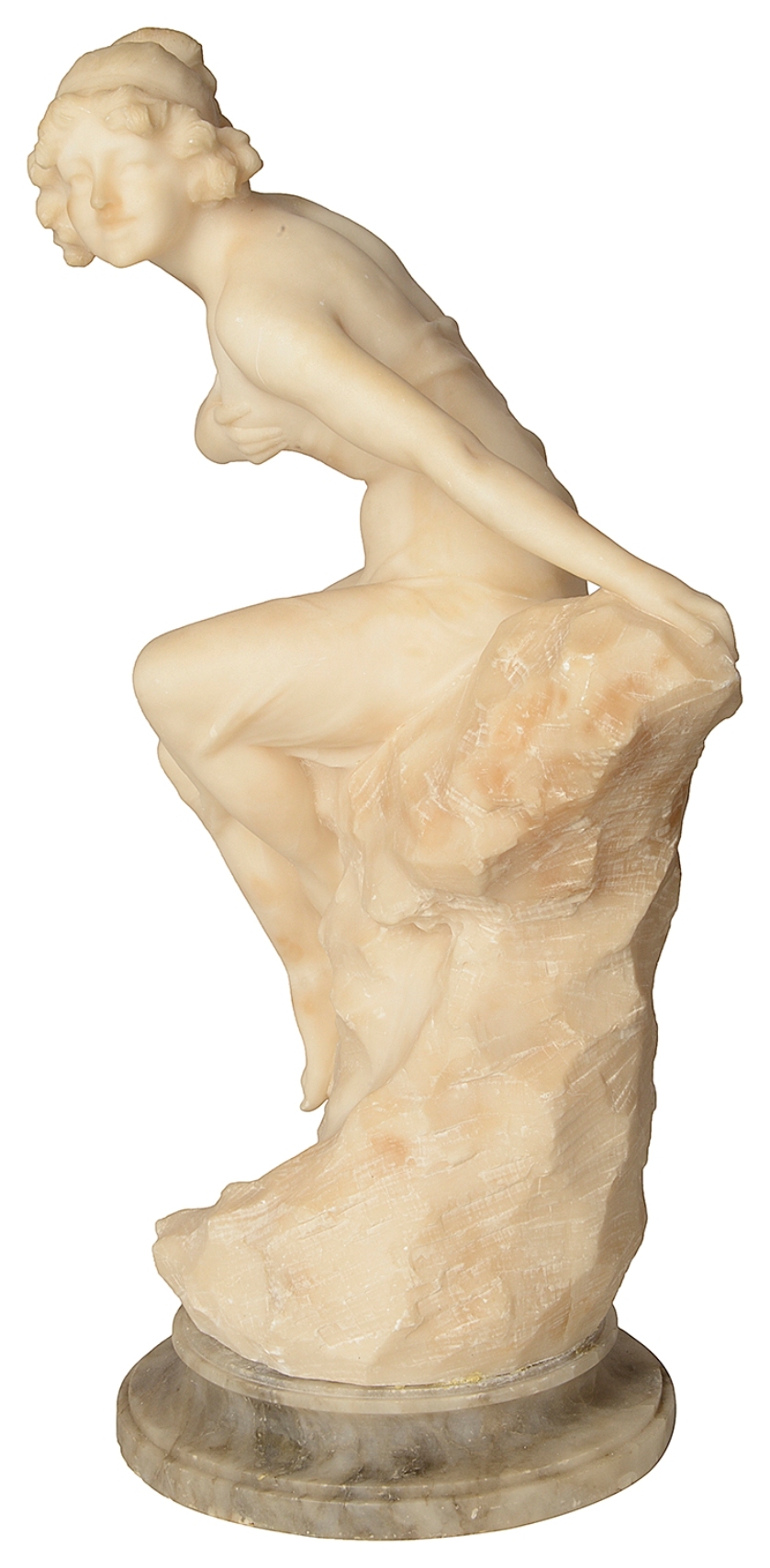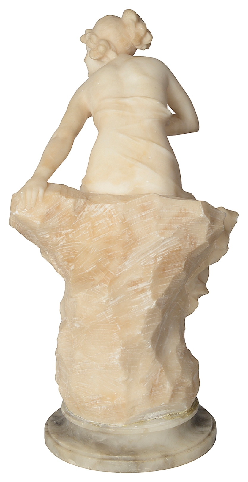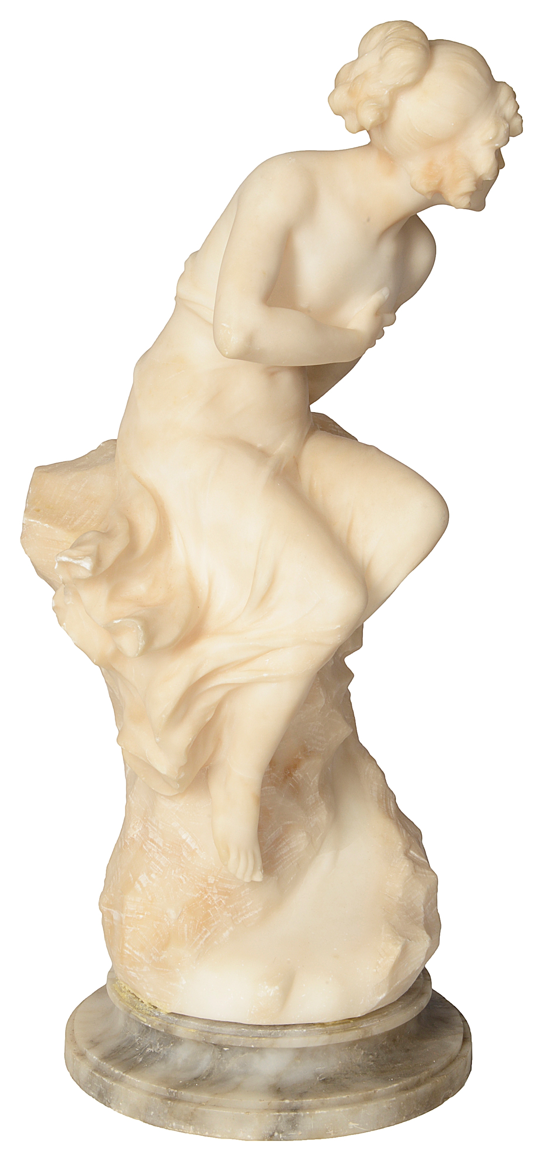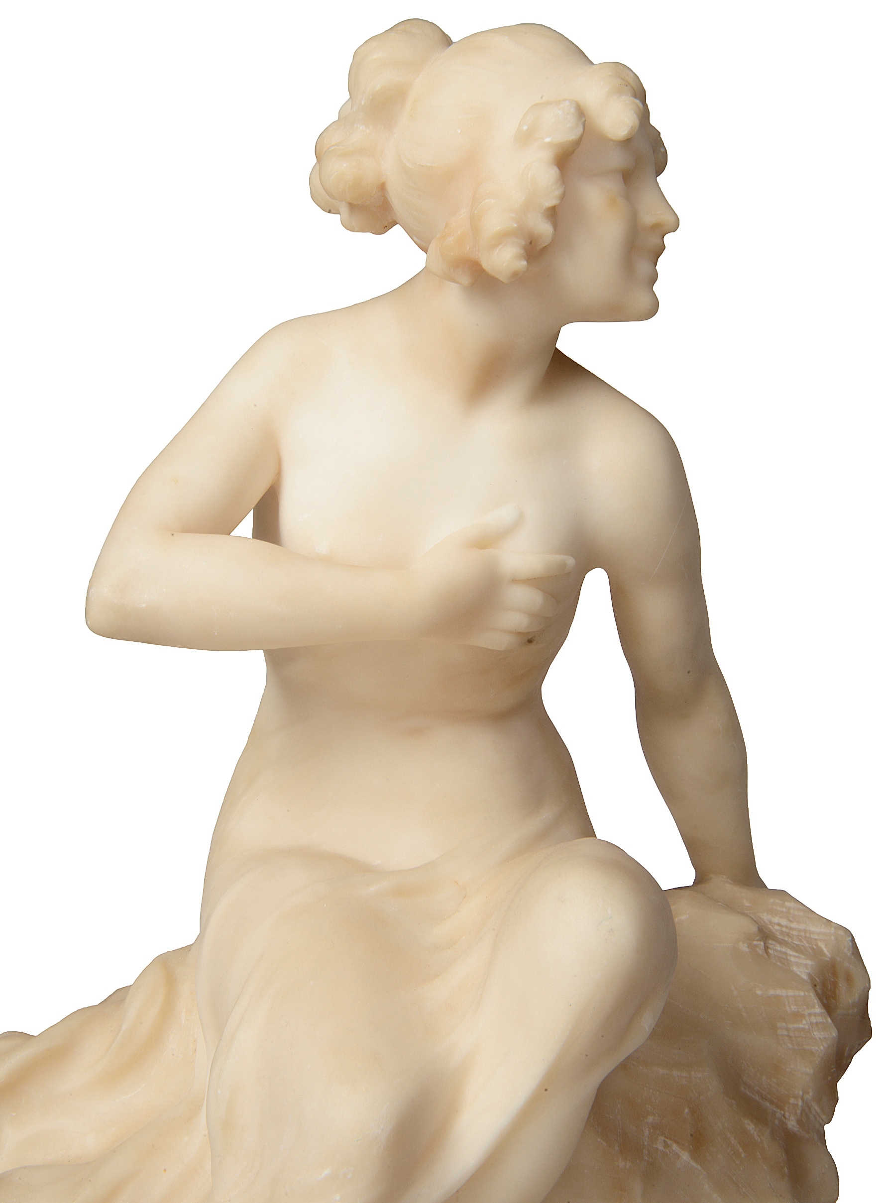 19th Century Alabaster statue of a Young girl sitting on a rock.