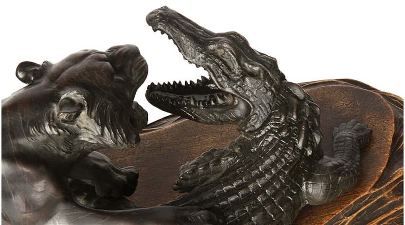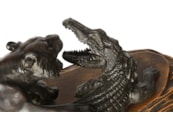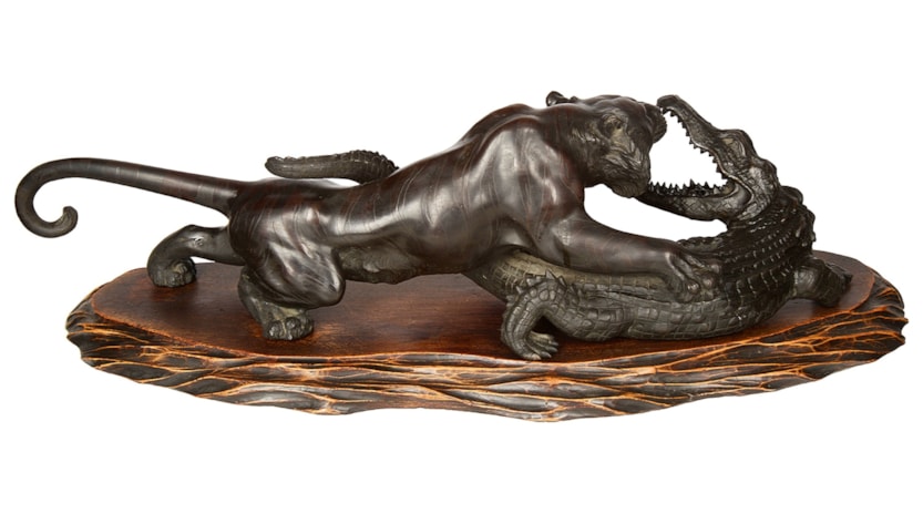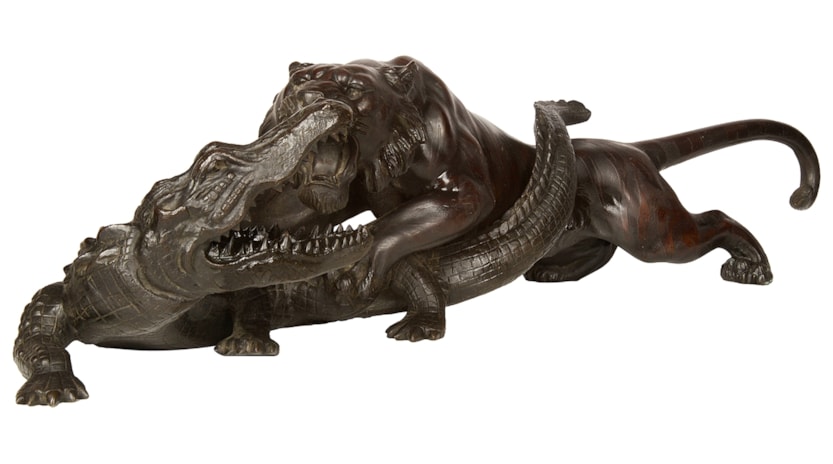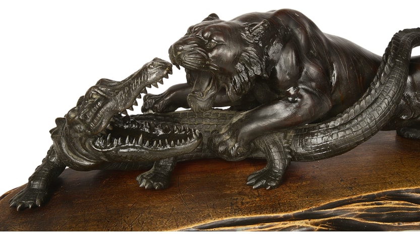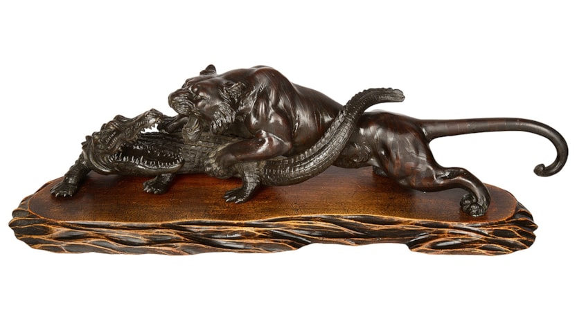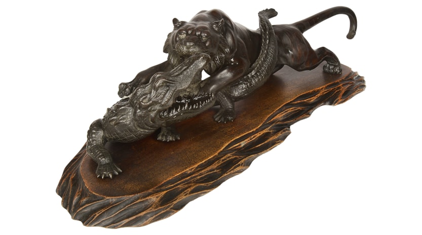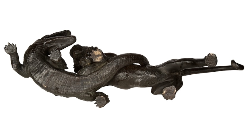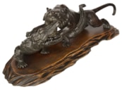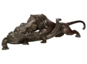 Japanese Meiji period Bronze Tiger attacking an crocodile. 19th Century
