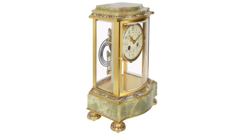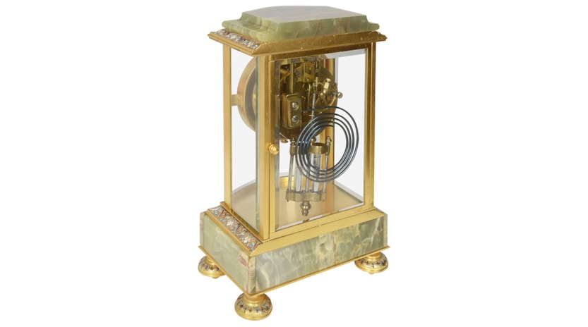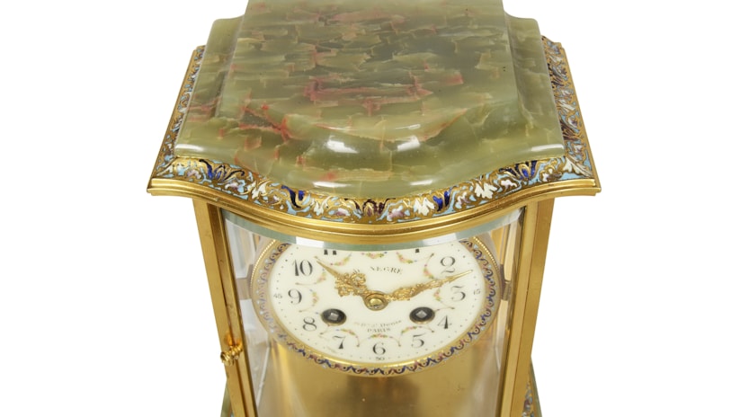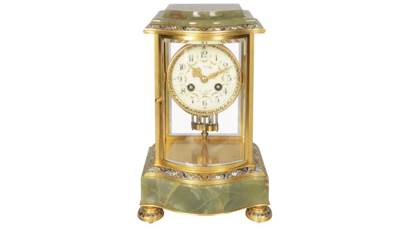 French 19th Century Onyx and enamel mantel clock.