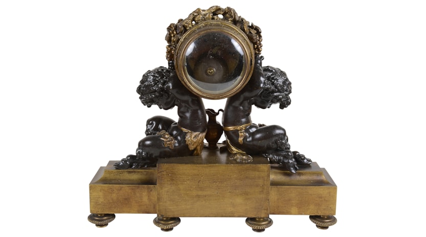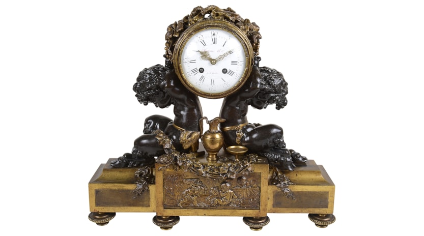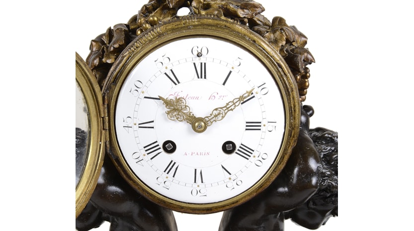 French Louis XVI style bronze mantel clock.