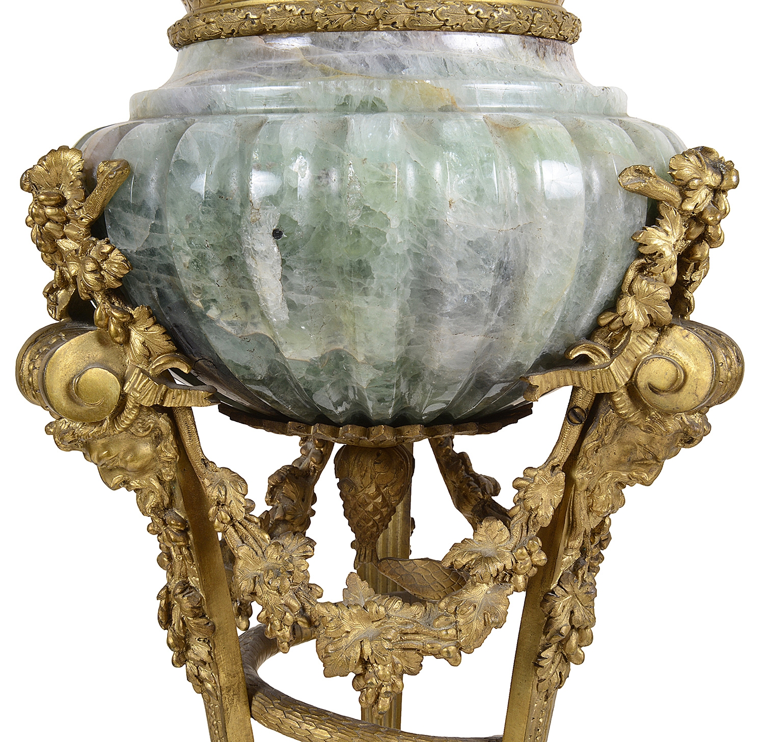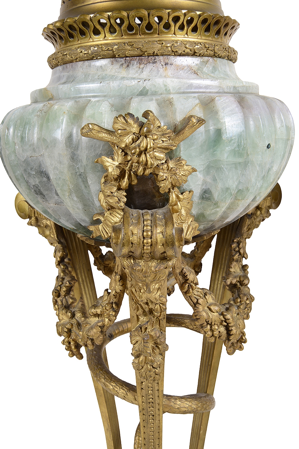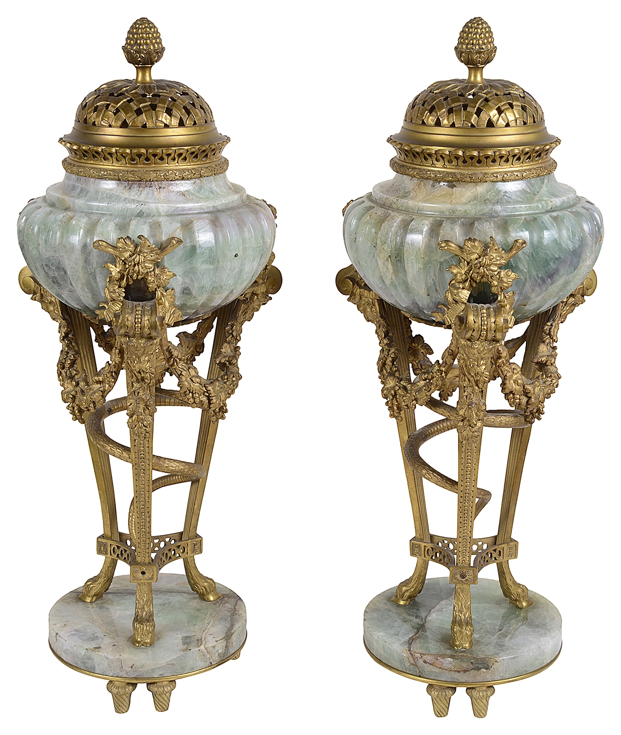 Large Pair 19th Century ormolu and quartz lidded urns.