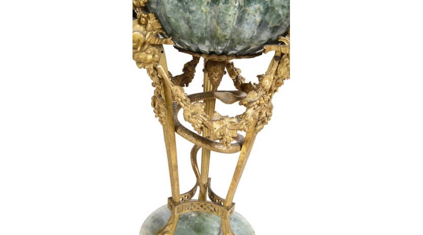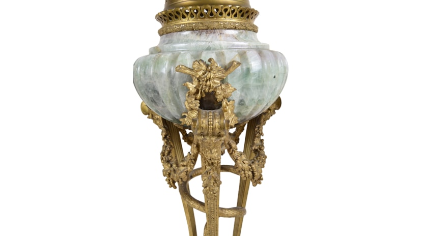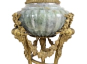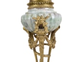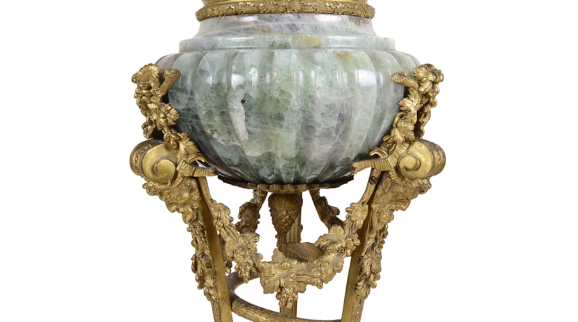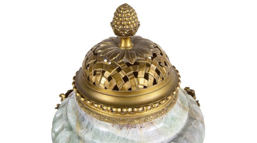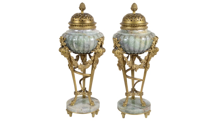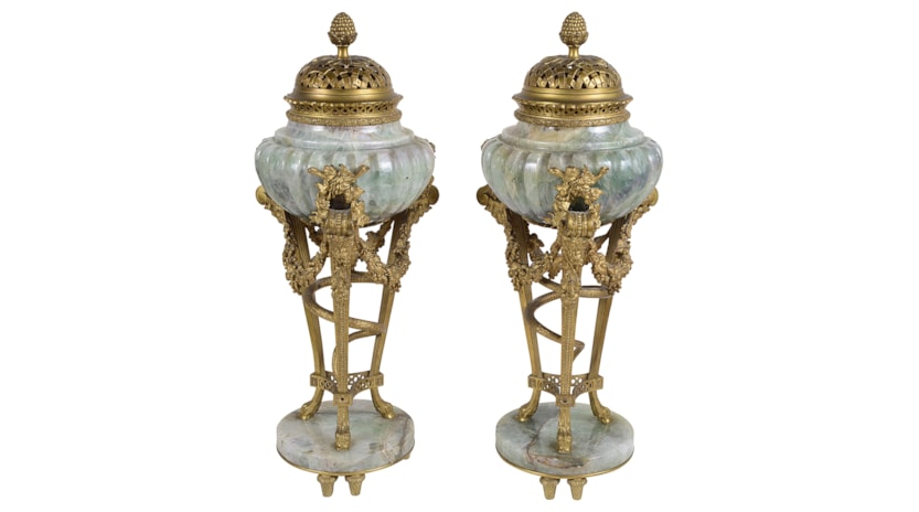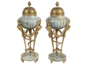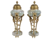 Large Pair 19th Century ormolu and quartz lidded urns.