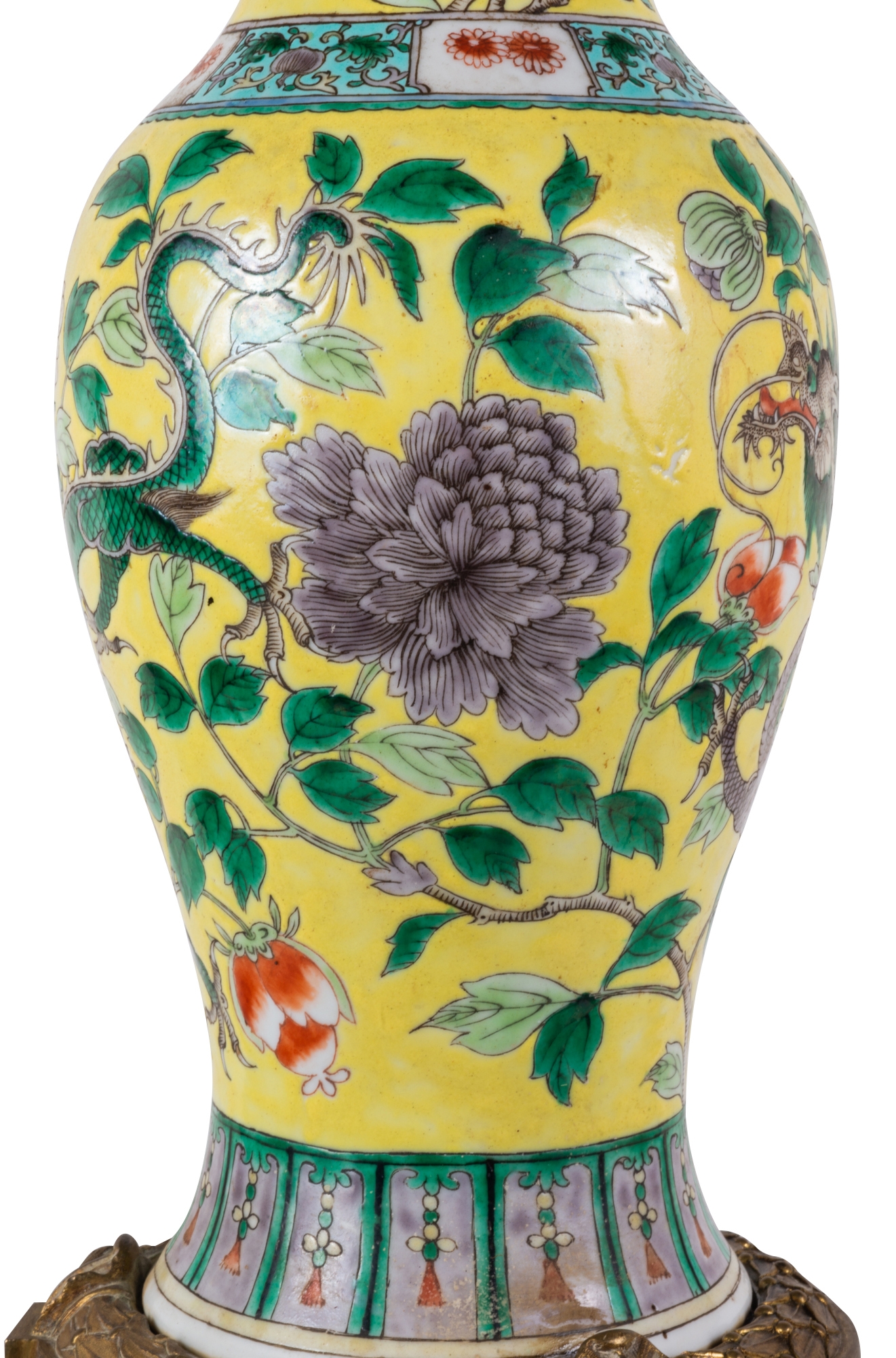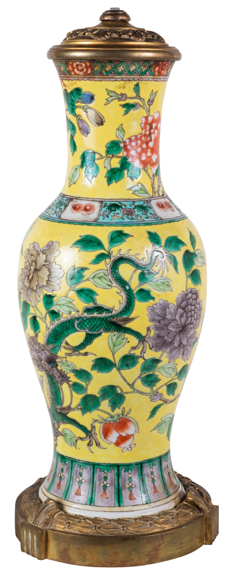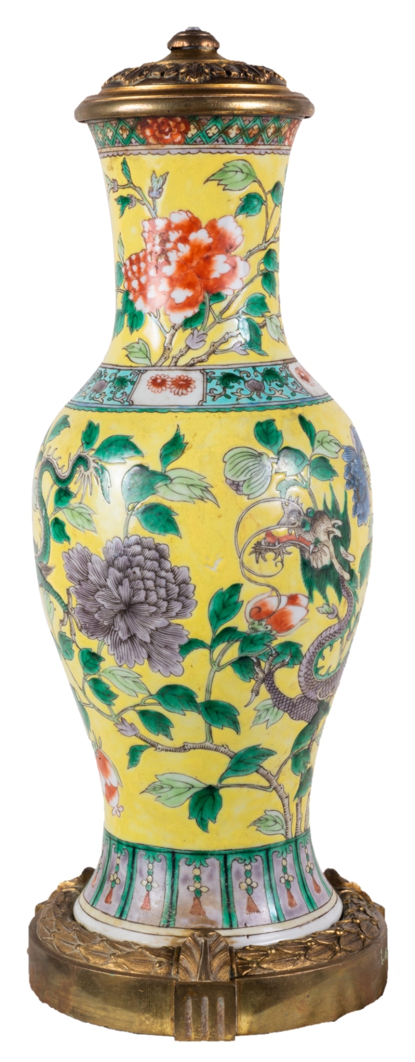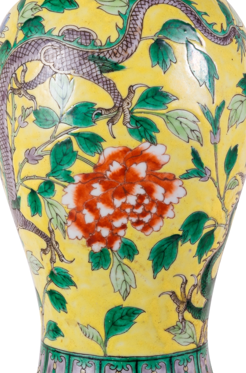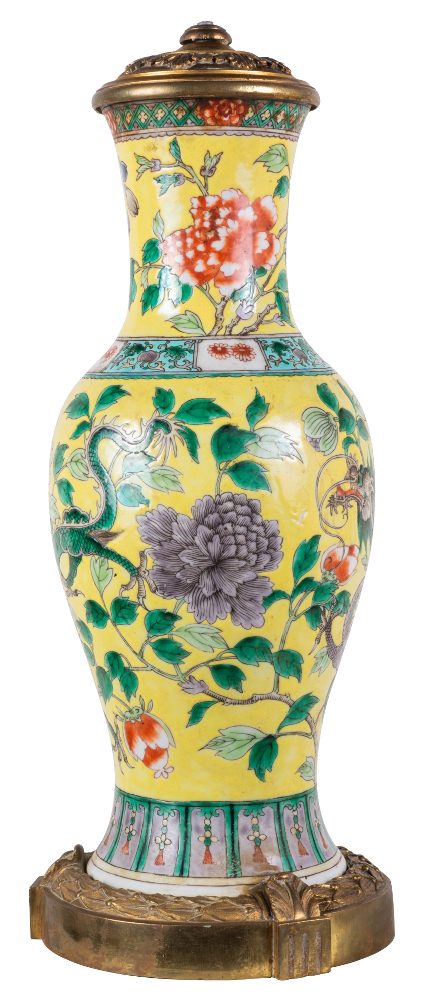 19th Century Chinese Famille Jaune vase / lamp, circa 1880