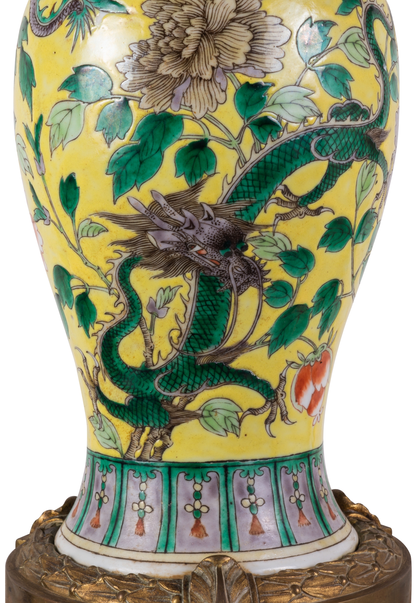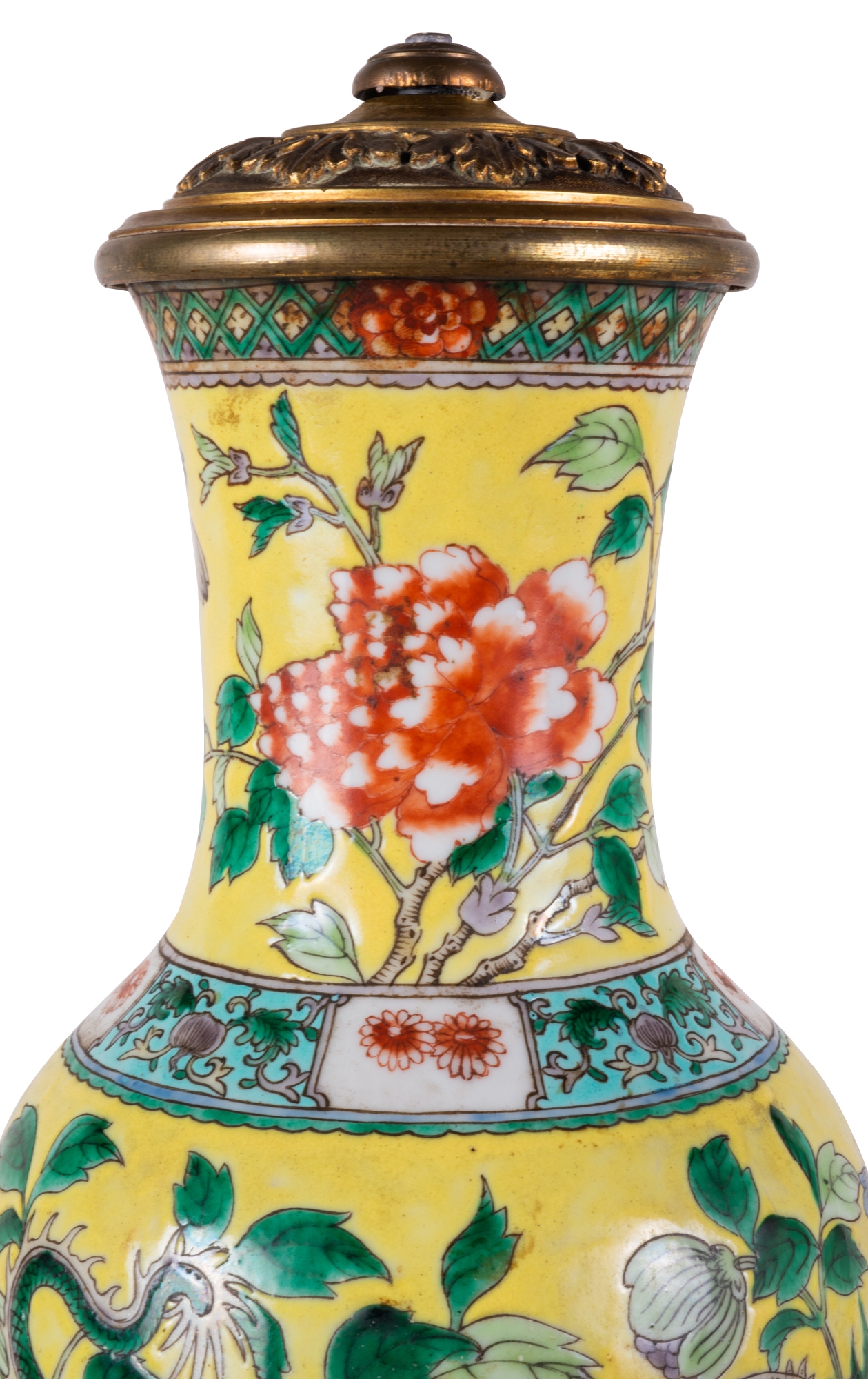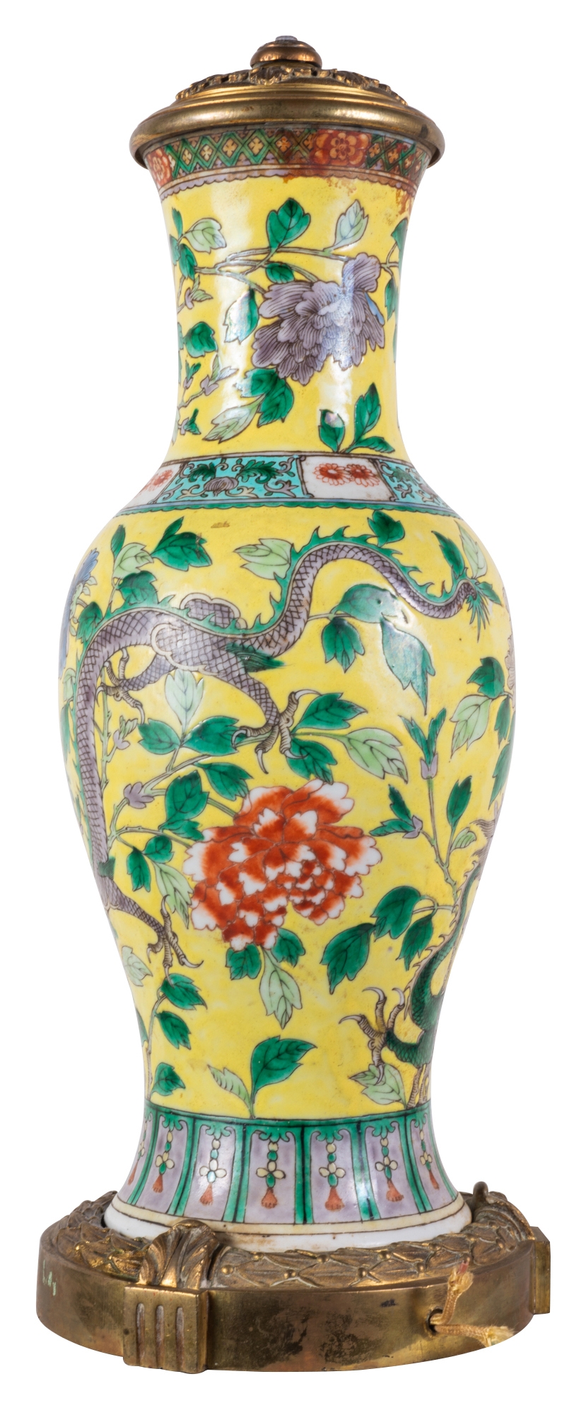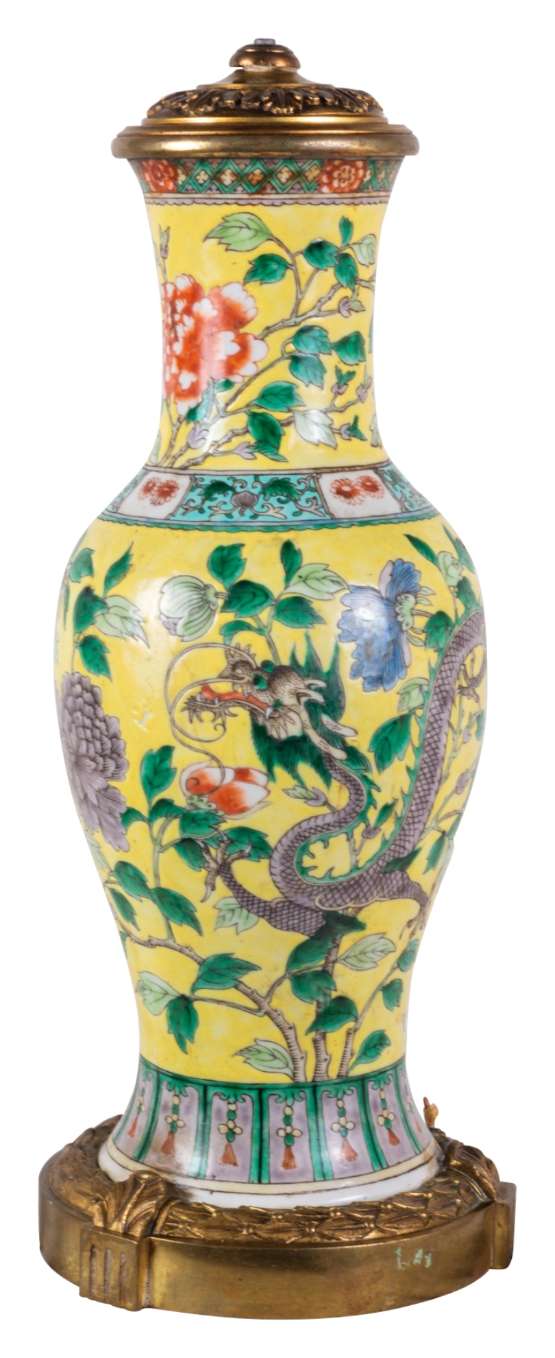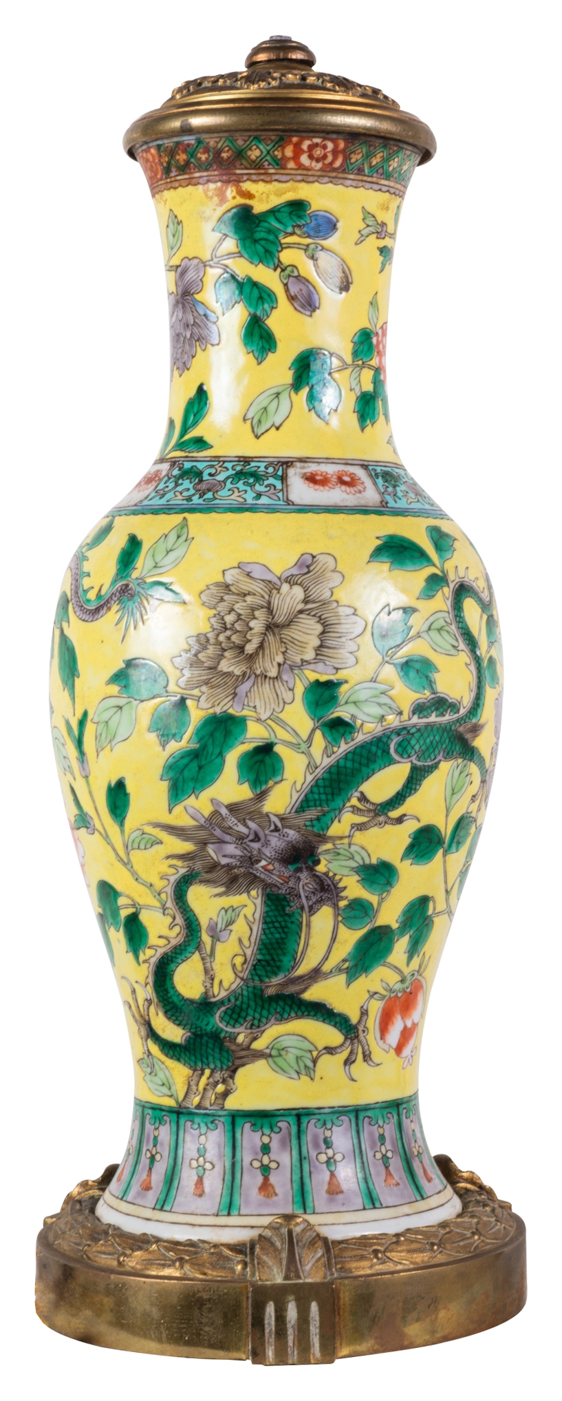 19th Century Chinese Famille Jaune vase / lamp, circa 1880