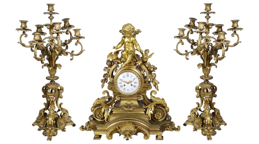 Large 19th Century French gilded clock set.