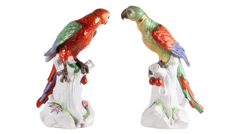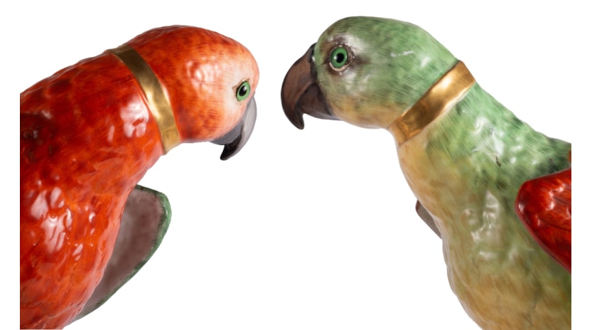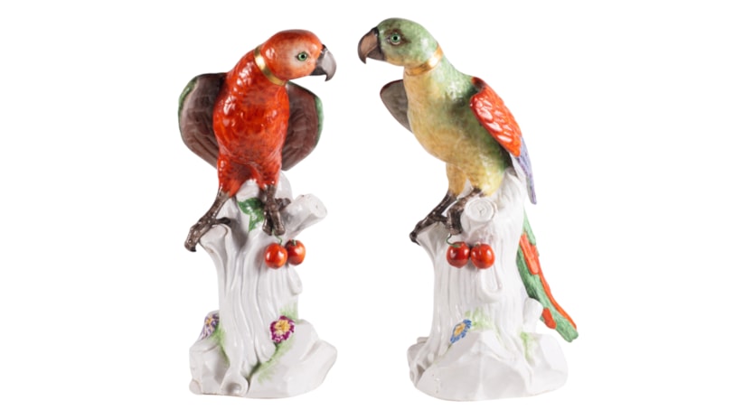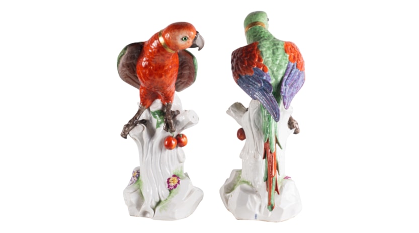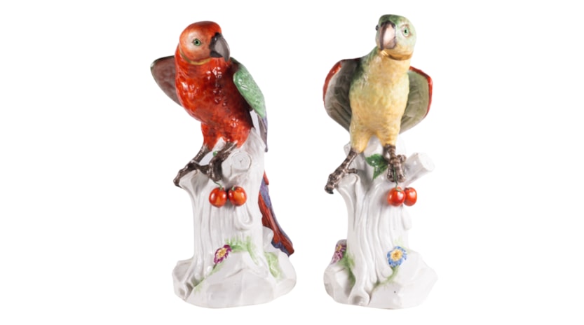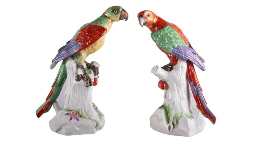 Home > Large pair 19th Century Dresden porcelain Parrots