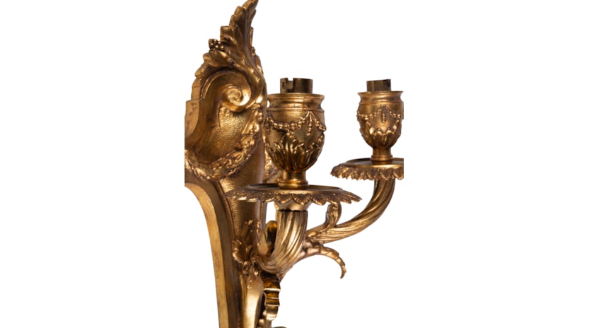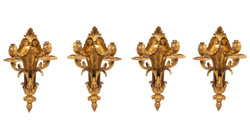 Four classical gilded bronze wall lights, 19th Century.