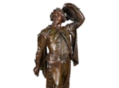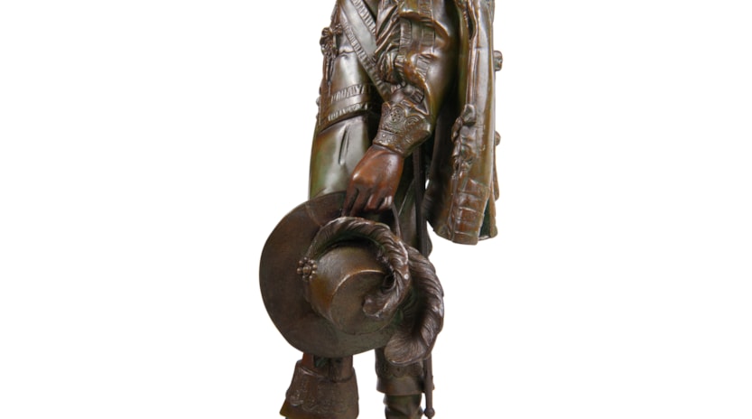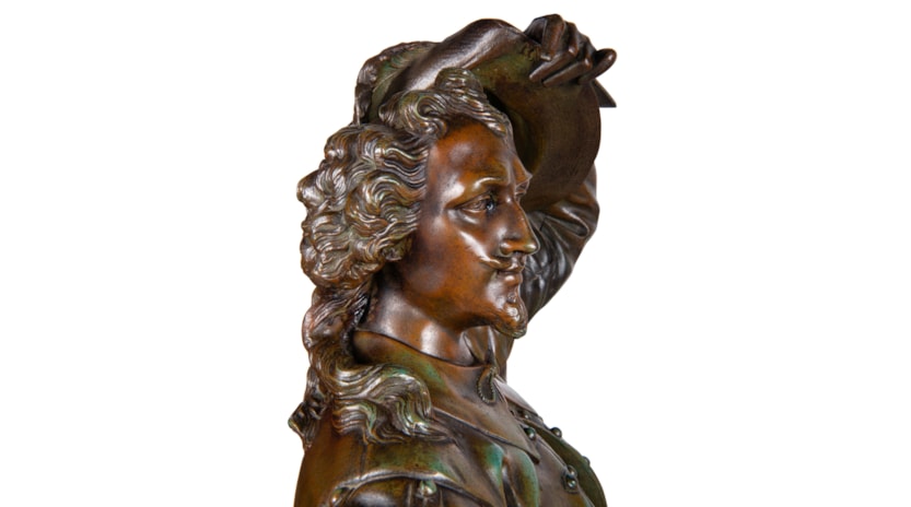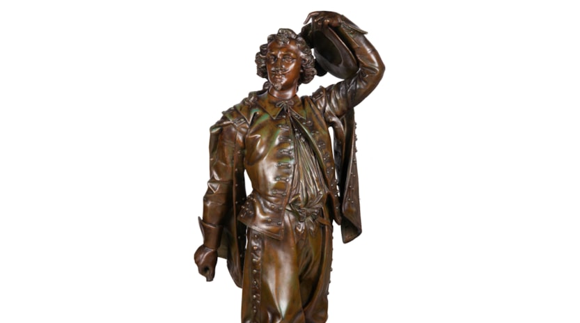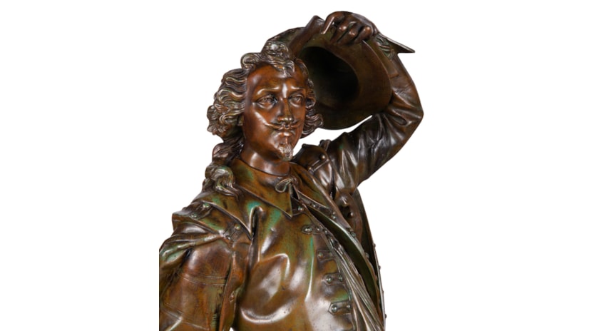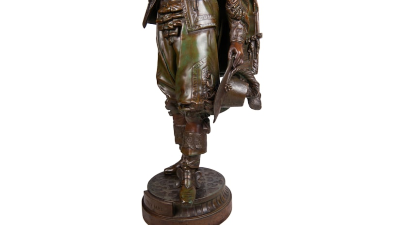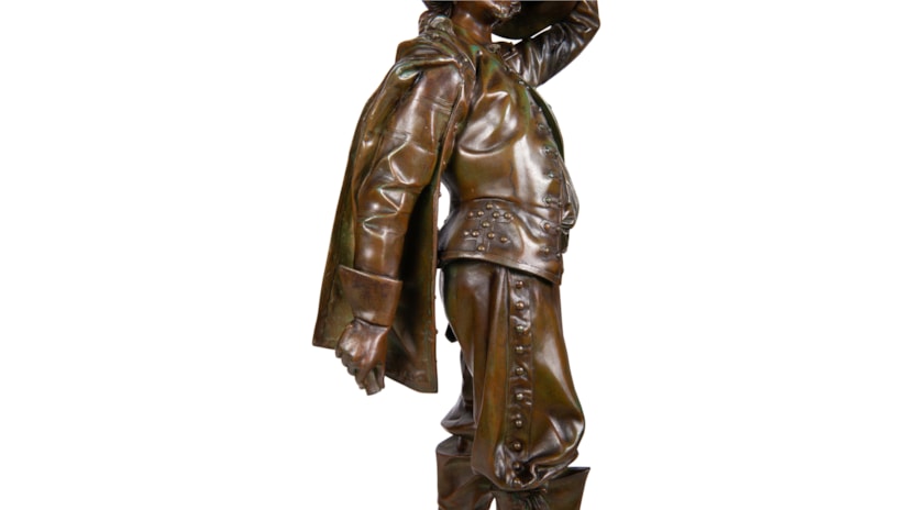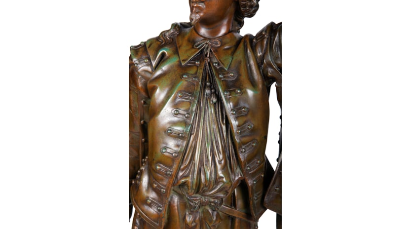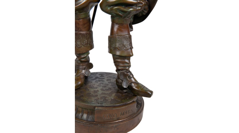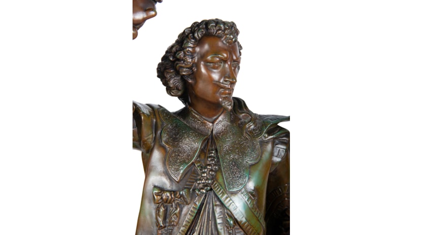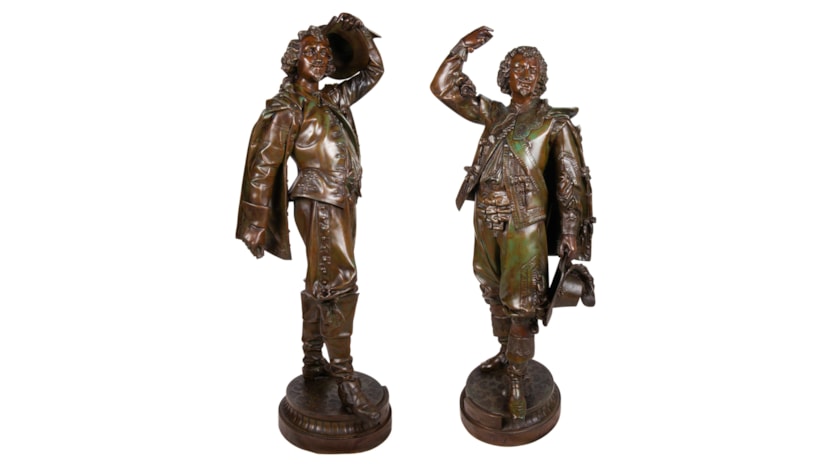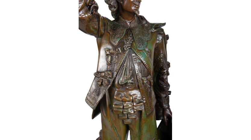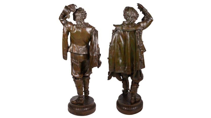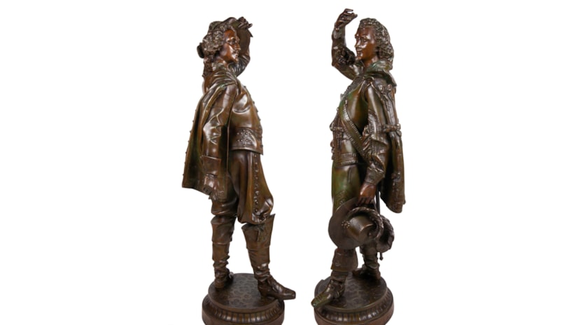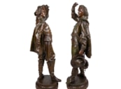 A very impressive pair of 19th Century French patinated bronzed Spelter Caveliers, each standing a gallant pose.