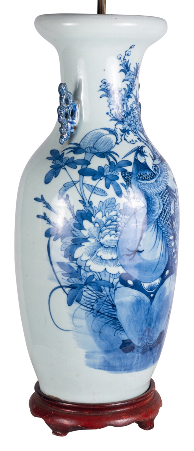 19th Century Chinese blue and white vase / lamp.