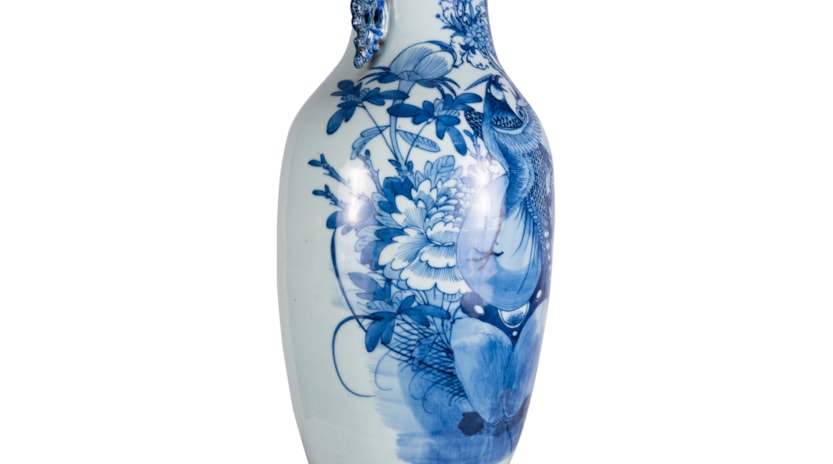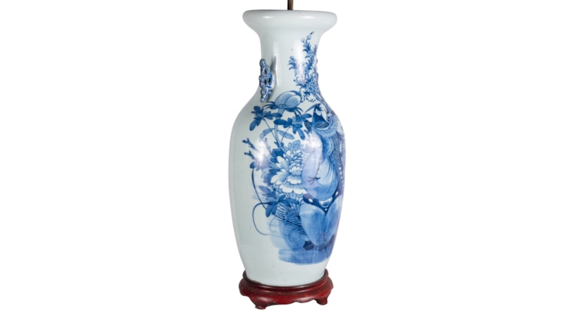 19th Century Chinese blue and white vase / lamp.
