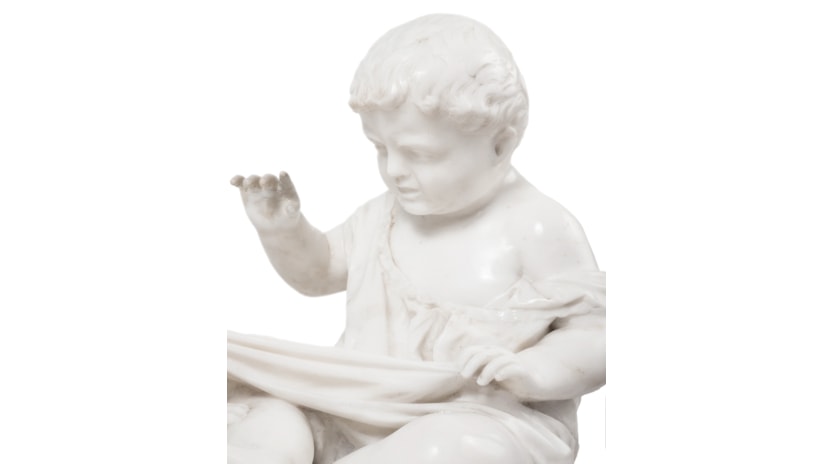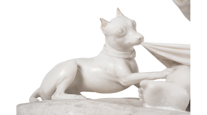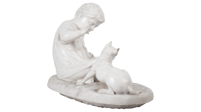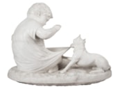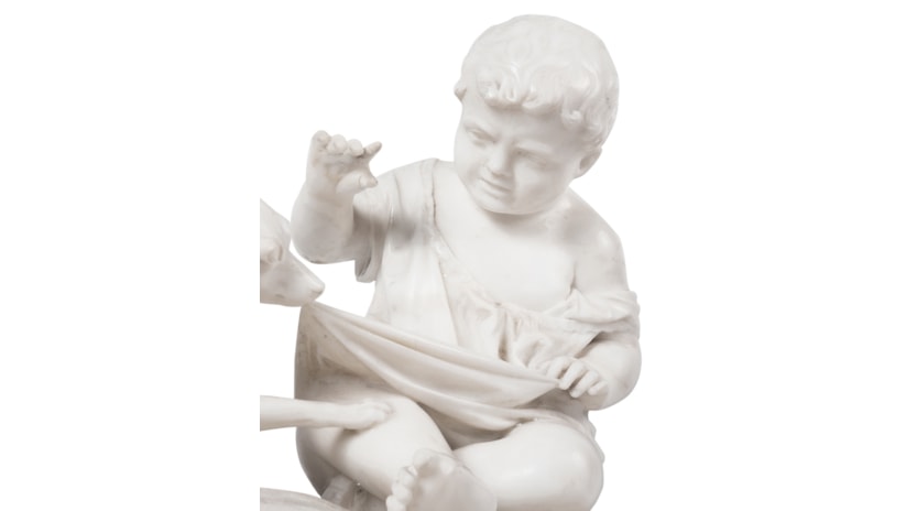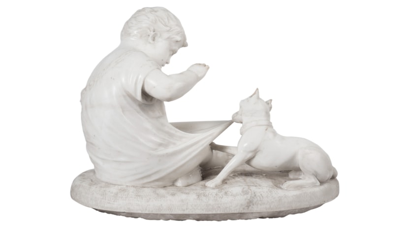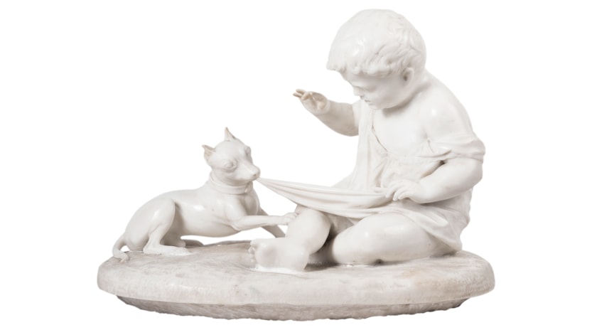 Marble group of child playing with a puppy, after Joseph Gott, 1786-1860
