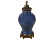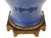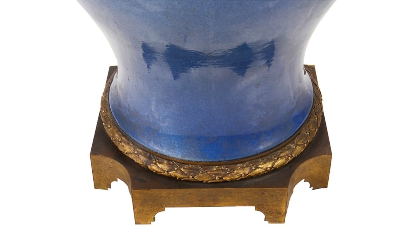 A striking 19th Century Chinese Power blue vase / lamp with French gilded ormolu mounts to the top and plinth base. Batch 59. 60496. LHYN