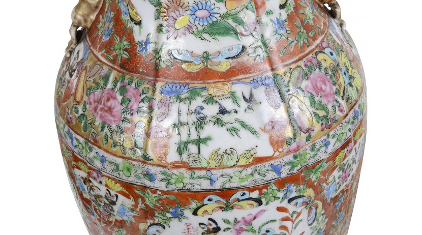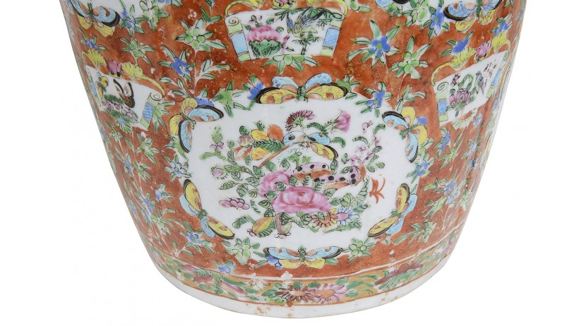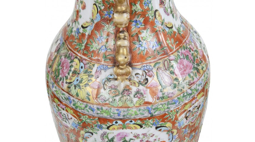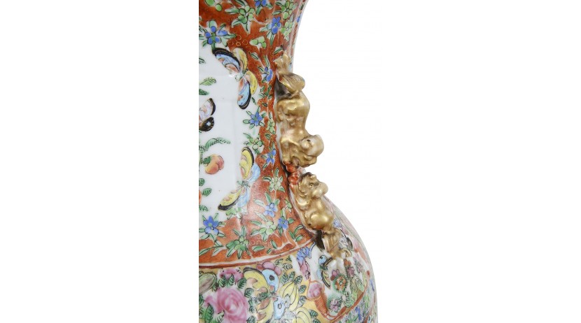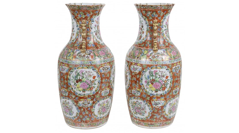 Pair 19th Century Rose medallion vases / lamps