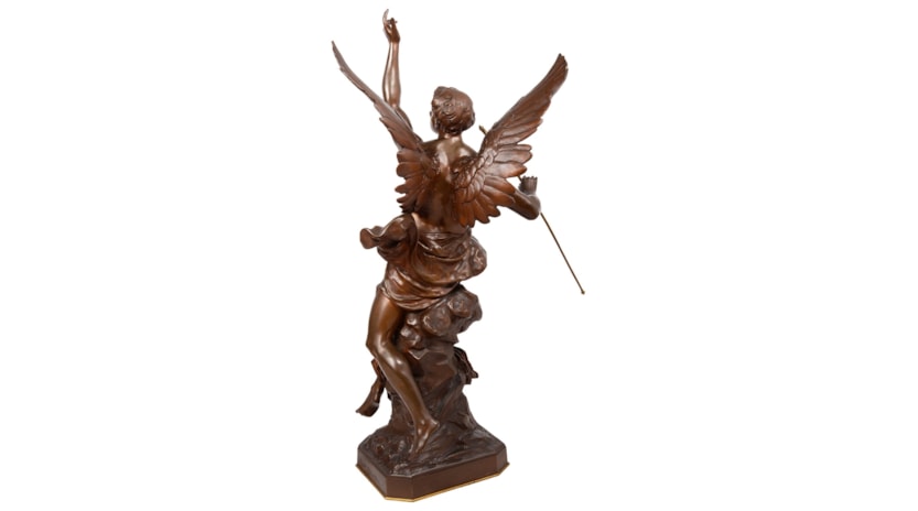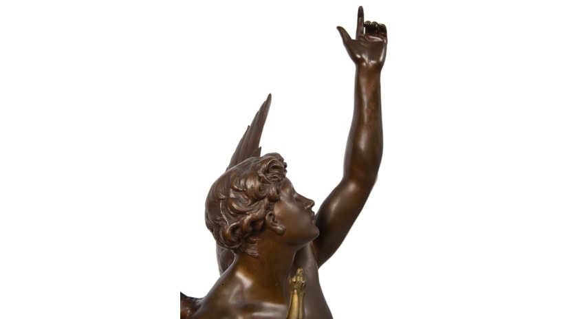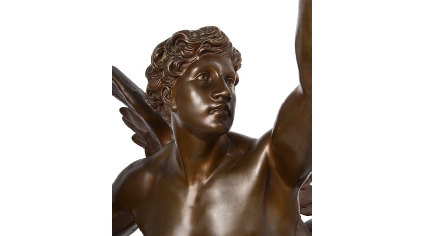 This wonderful 19th Century Patinated bronze statue of this winged classical figure about to take flight.